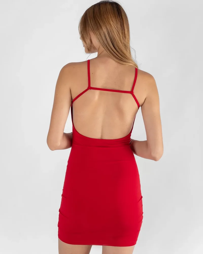 Sırt Detaylı Askılı Mini Kırmızı Elbise