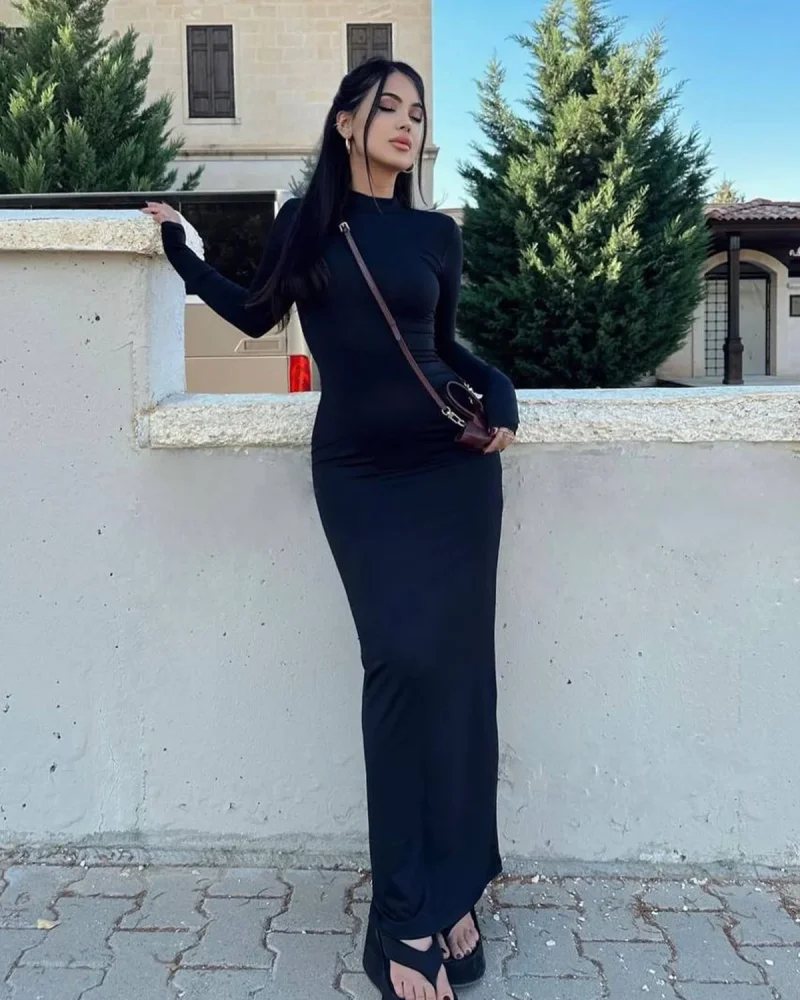 Uzun Kollu Basic Uzun Siyah Sandy Elbise