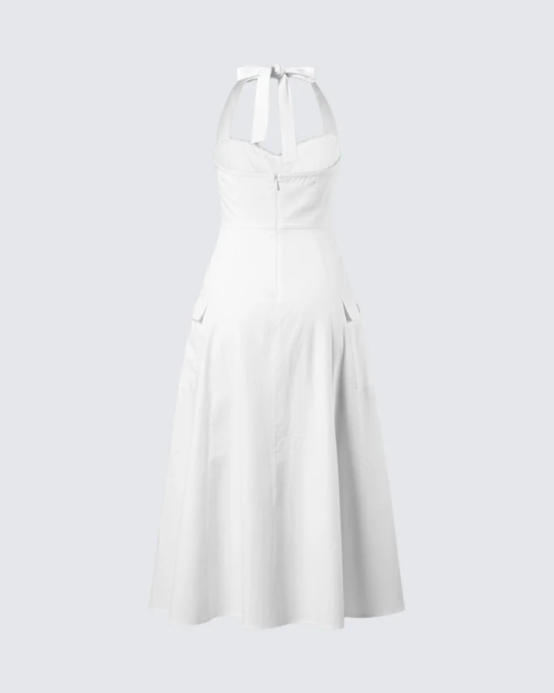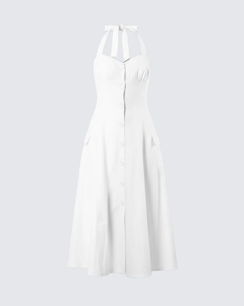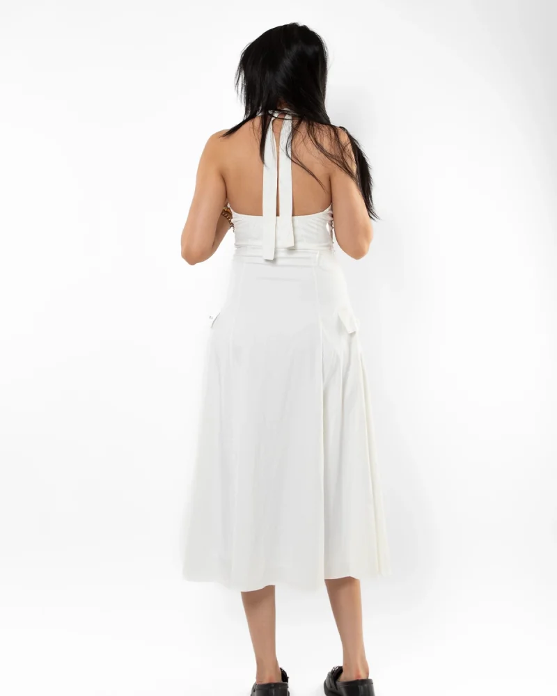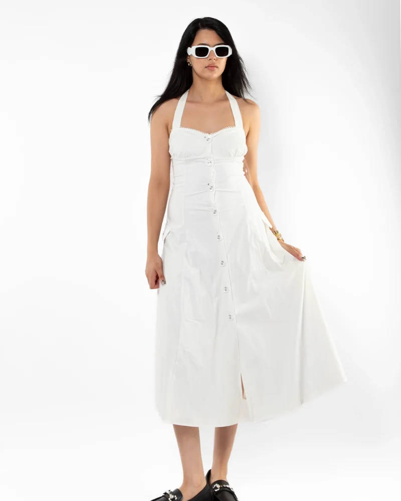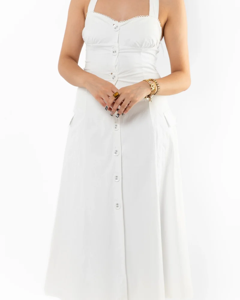 Düğmeli Beyaz Poplin Elbise