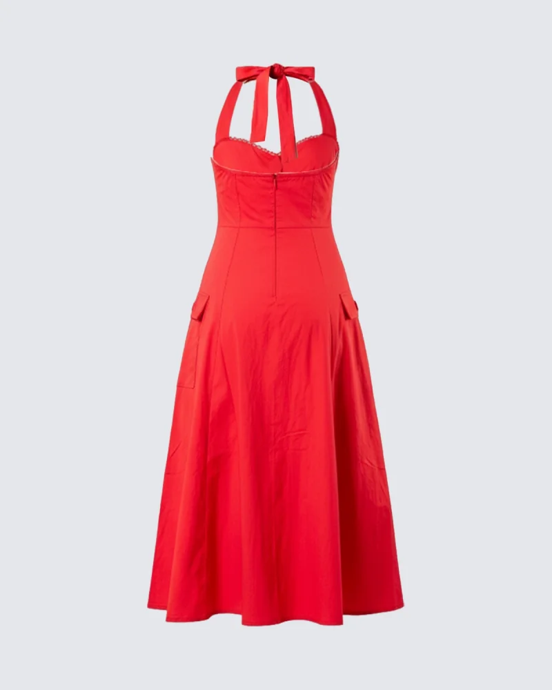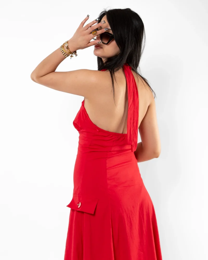 Göğüs Drapeli İp Bağlamalı Sırt Dekolteli Kırmızı Mini Elbise