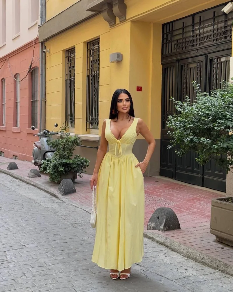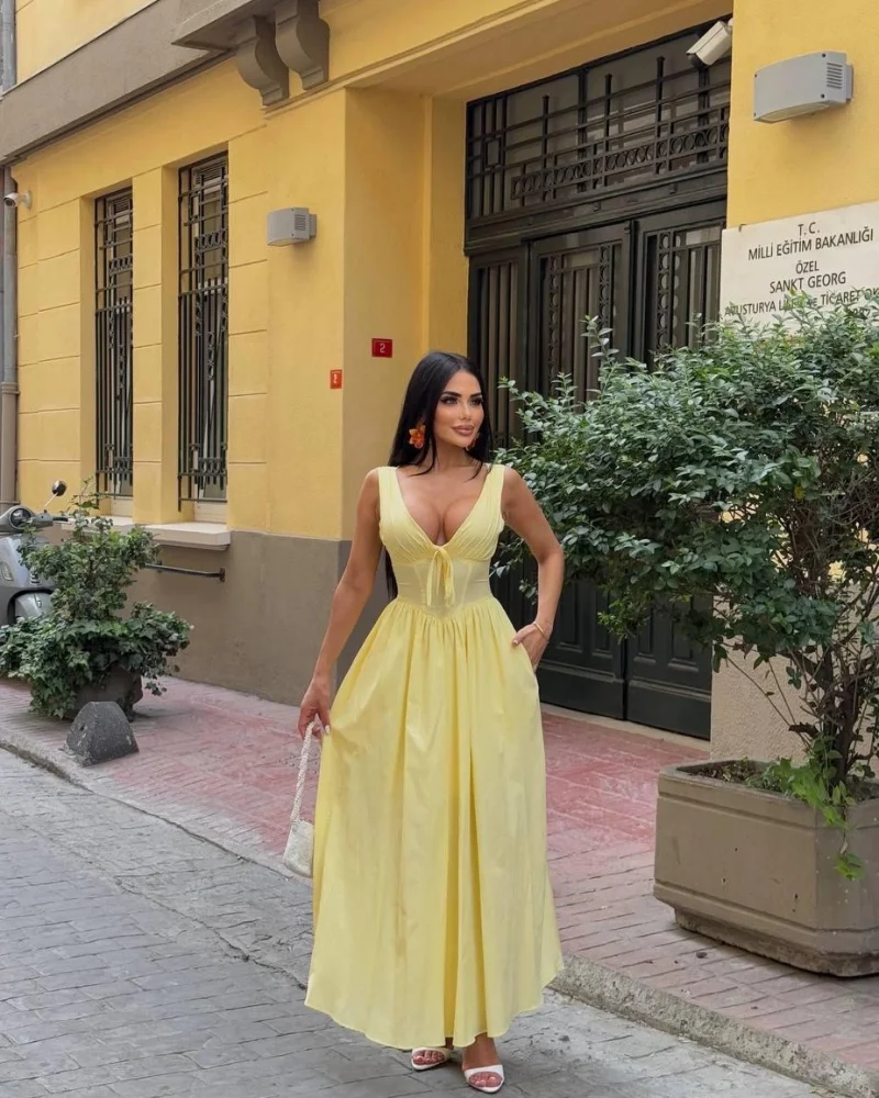 Balenli Prenses Sarı Elbise