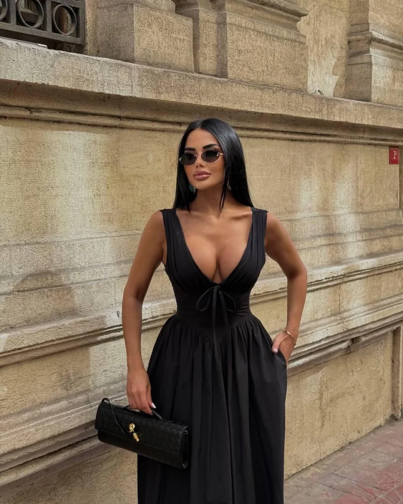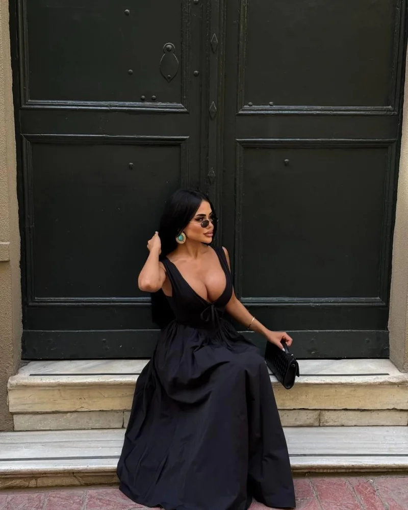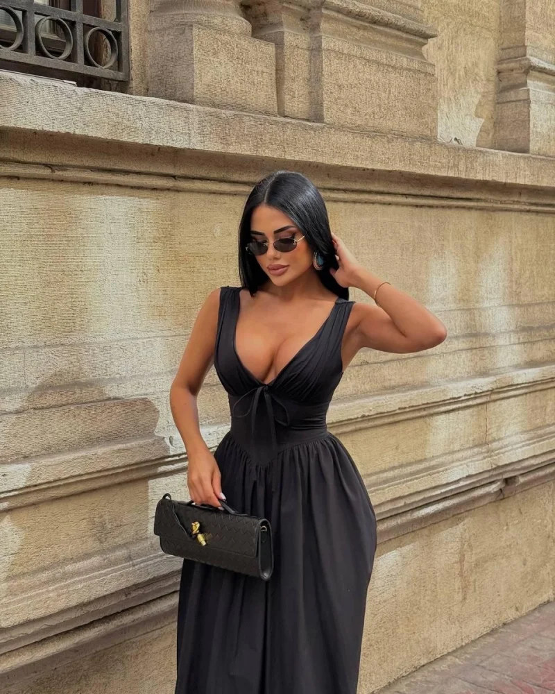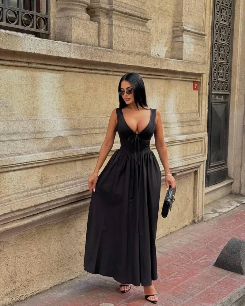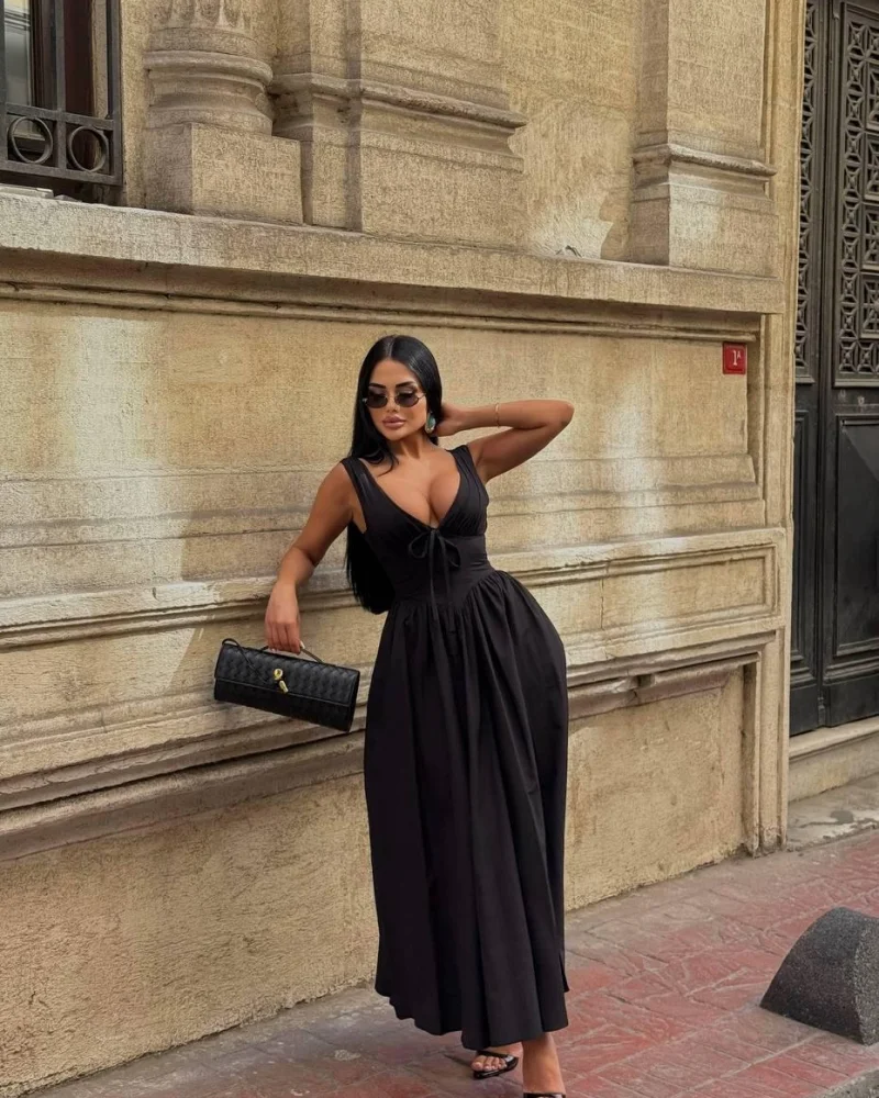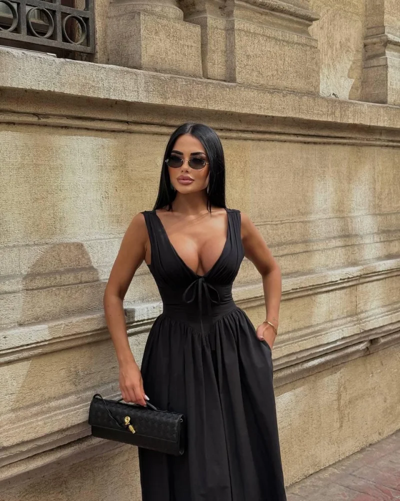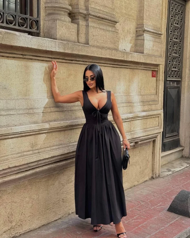 Sırt Bağlamalı Siyah Elbise