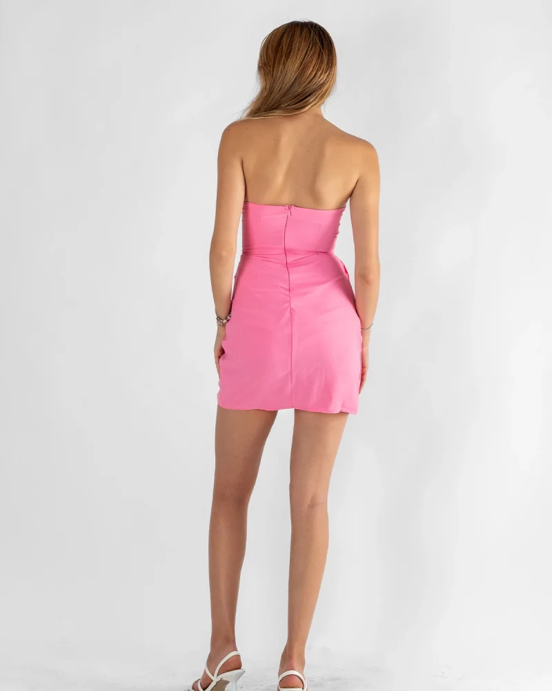 Korse Detaylı Straplez Pembe Mini Elbise