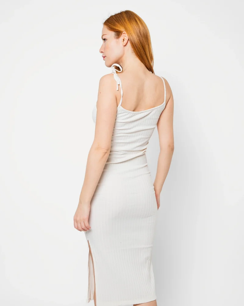 İp Askılı Sırt Dekolteli Yırtmaçlı Elbise