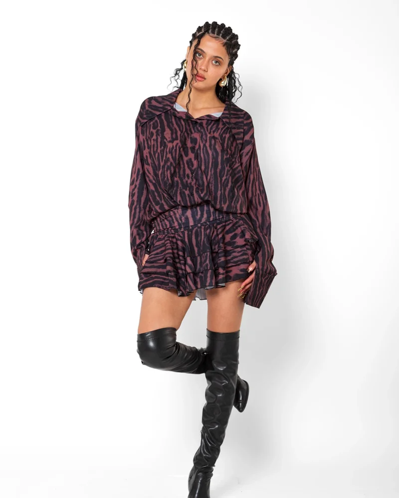 Desenli Çizgili Siyah Gömlek Elbise
