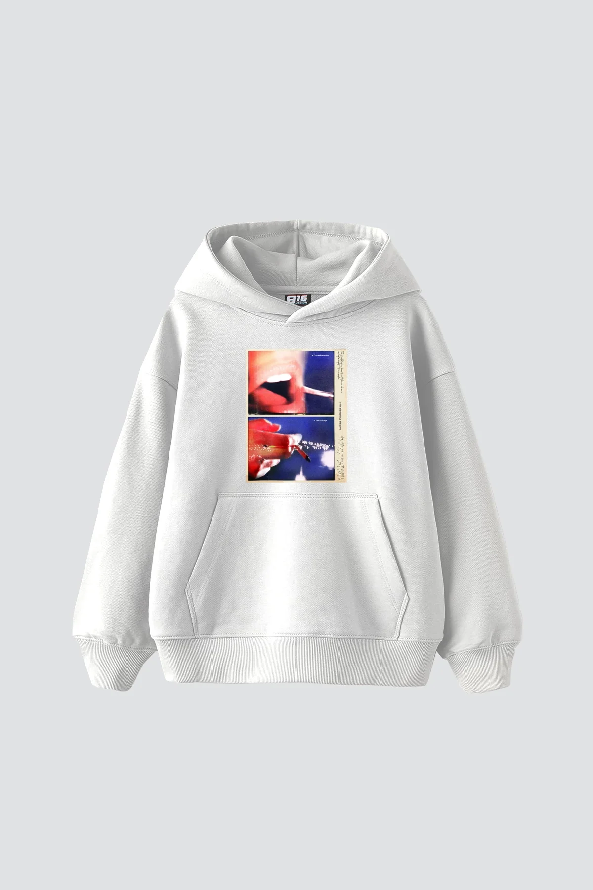 Forget & Remember Baskılı Oversize Kadın Beyaz Hoodie