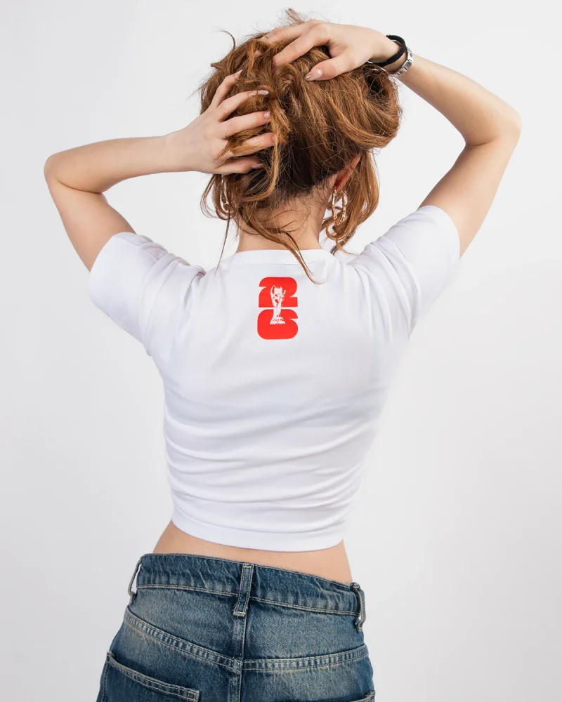 Red Bra Baskılı Beyaz Crop Top