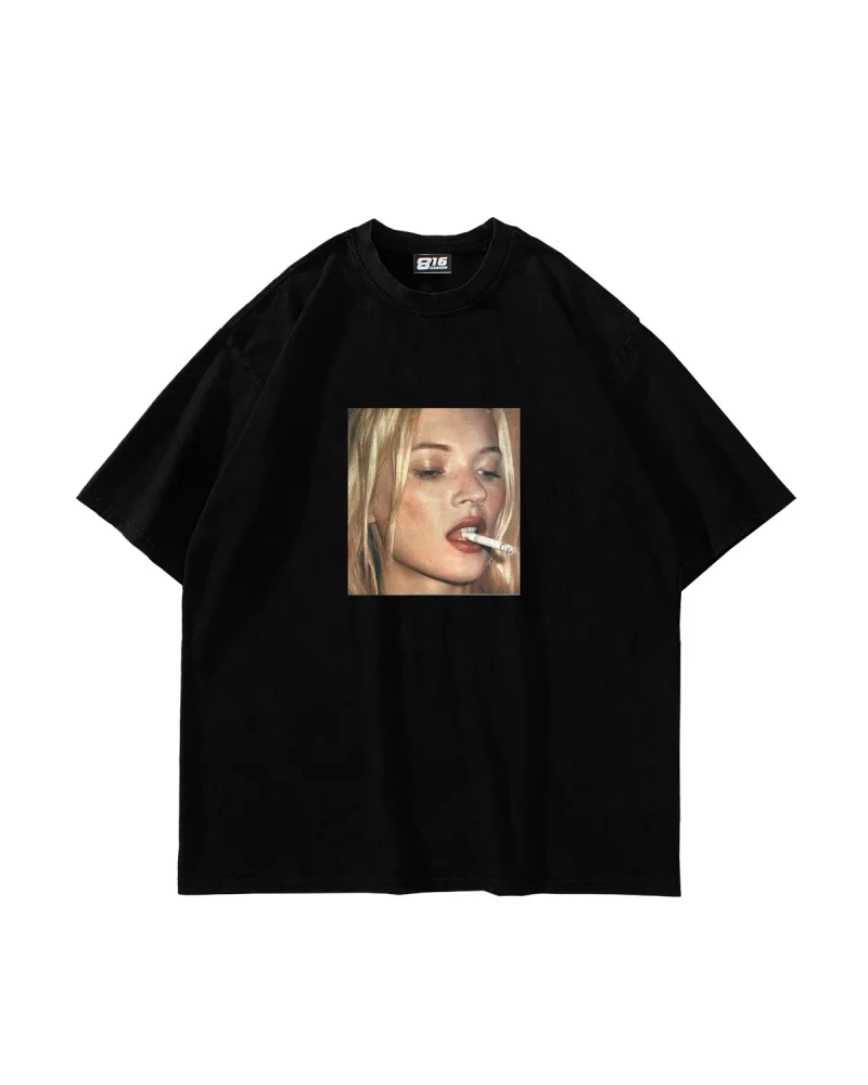 Kate Smokin Baskılı Oversize Unisex Siyah Tshirt