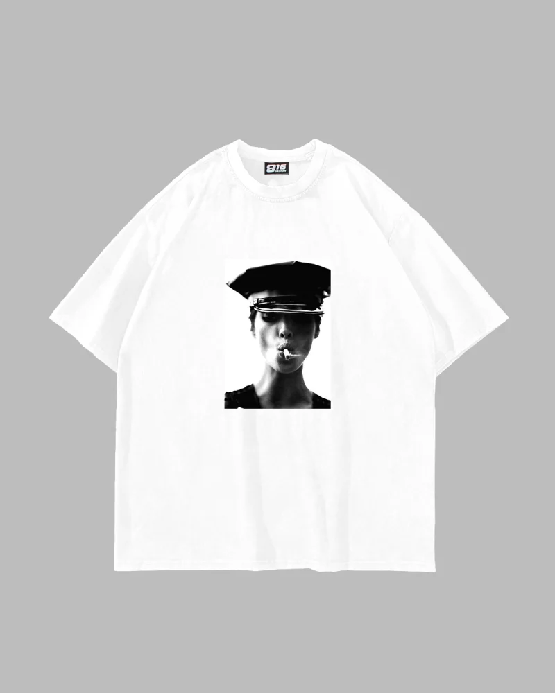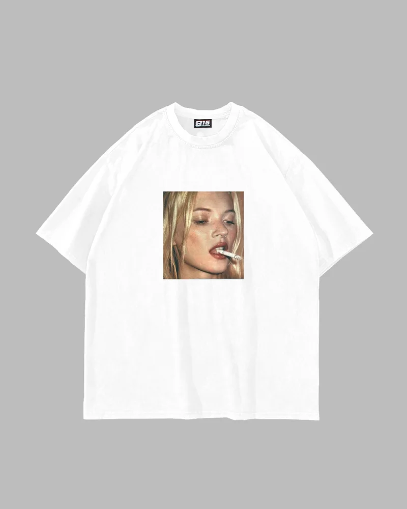 Kate Smokin Baskılı Oversize Unisex Beyaz Tshirt