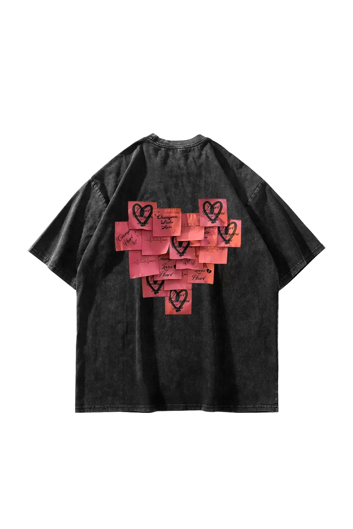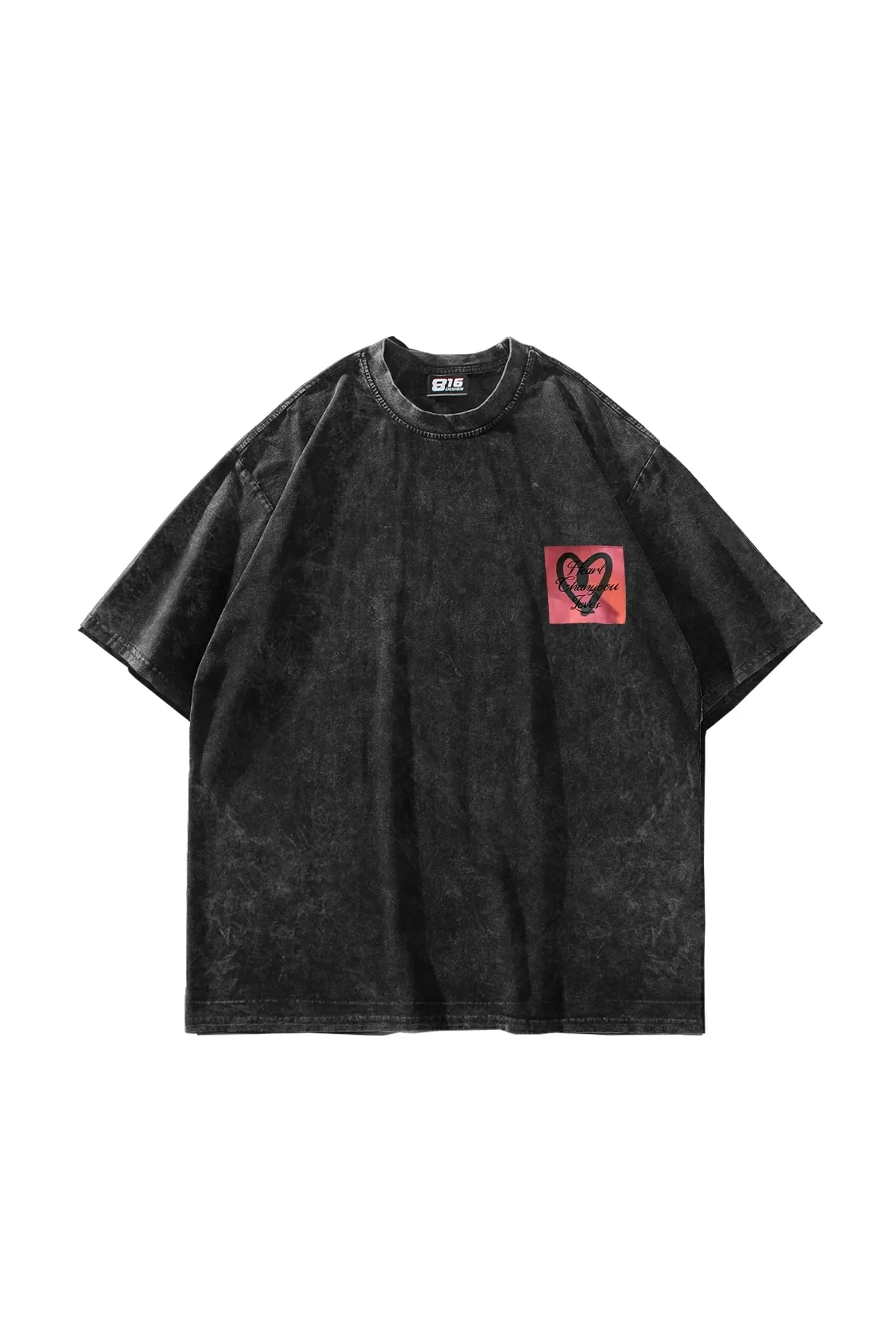 Love baskılı oversize unisex yıkanmış siyah tshirt ile sokak modasına uyum sağlayın, Bak Moda kalitesiyle şıklığı keşfedin!