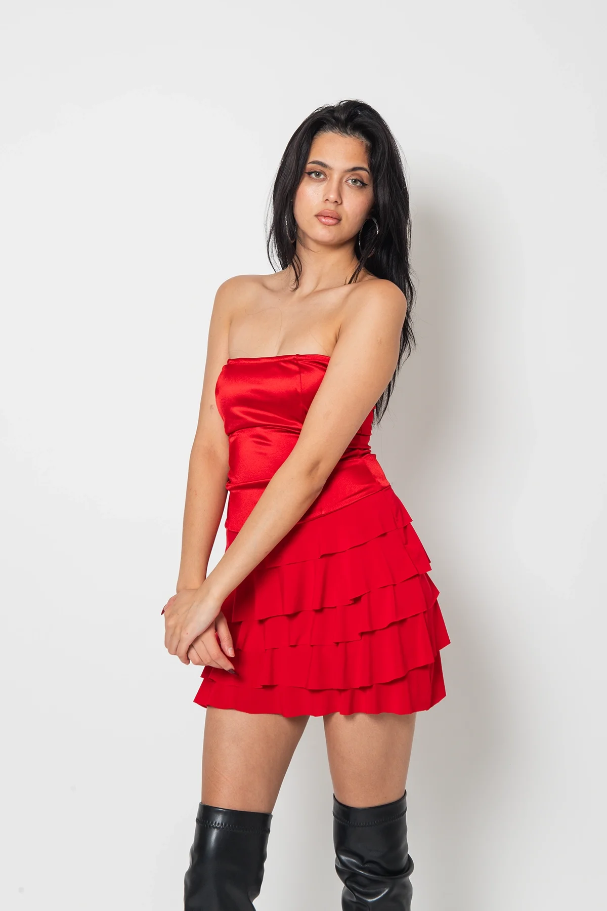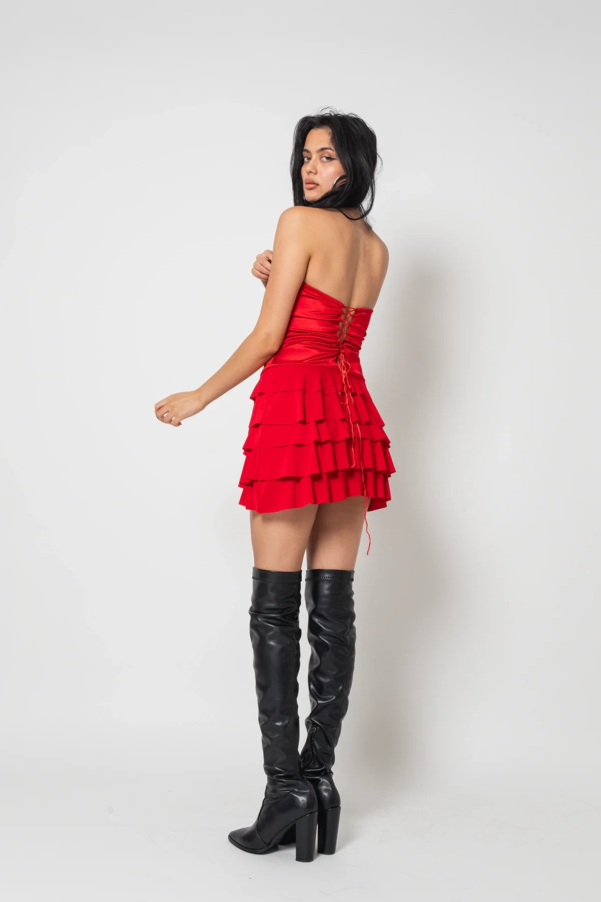 Zamansız şıklığın modern bir yorumunu sunan Molly Straplez Bağlama Detaylı Kırmızı Elbise, özel günlerinizin vazgeçilmez parçası olmaya aday. Straplez kesimiyle omuzları zarifçe ortaya çıkarırken, bel kısmındaki bağlama detayıyla vücut hatlarını estetik bir şekilde vurgular.