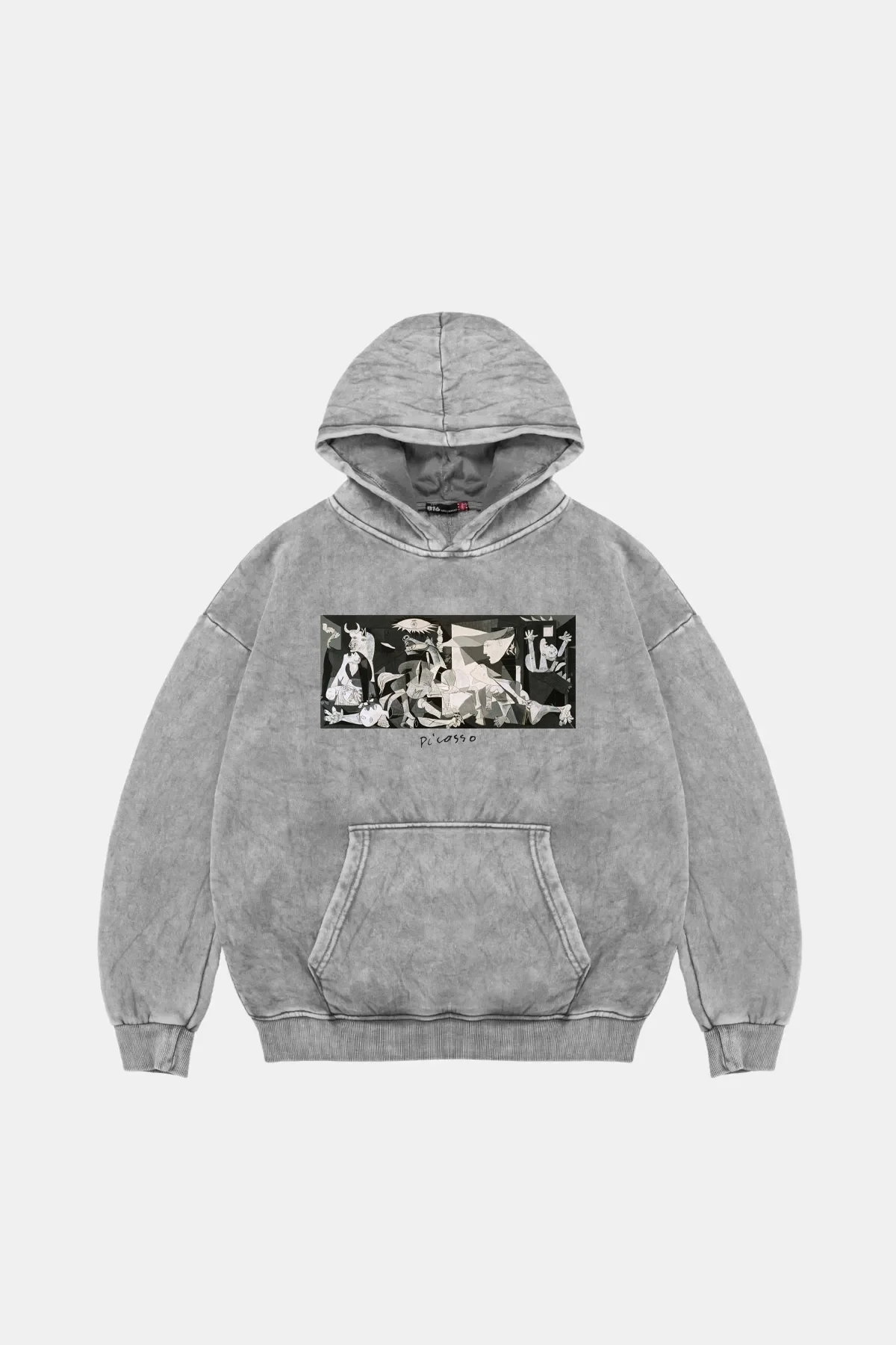 Özel yıkamalı kumaşıyla her parça farklılık gösteren bu Picasso Guernica hoodie, Picasso Guernica baskılarıyla enerjik ve modern bir görünüm sunar. Rahat kesimi ve kapüşonuyla gün boyu konfor sağlar. Şıklığı ve rahatlığı bir arada arayan kadınlar için ideal bir seçim.