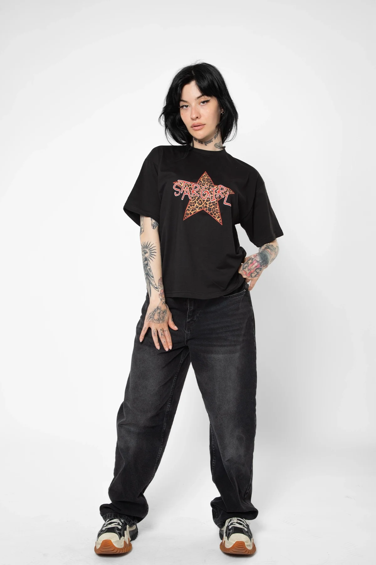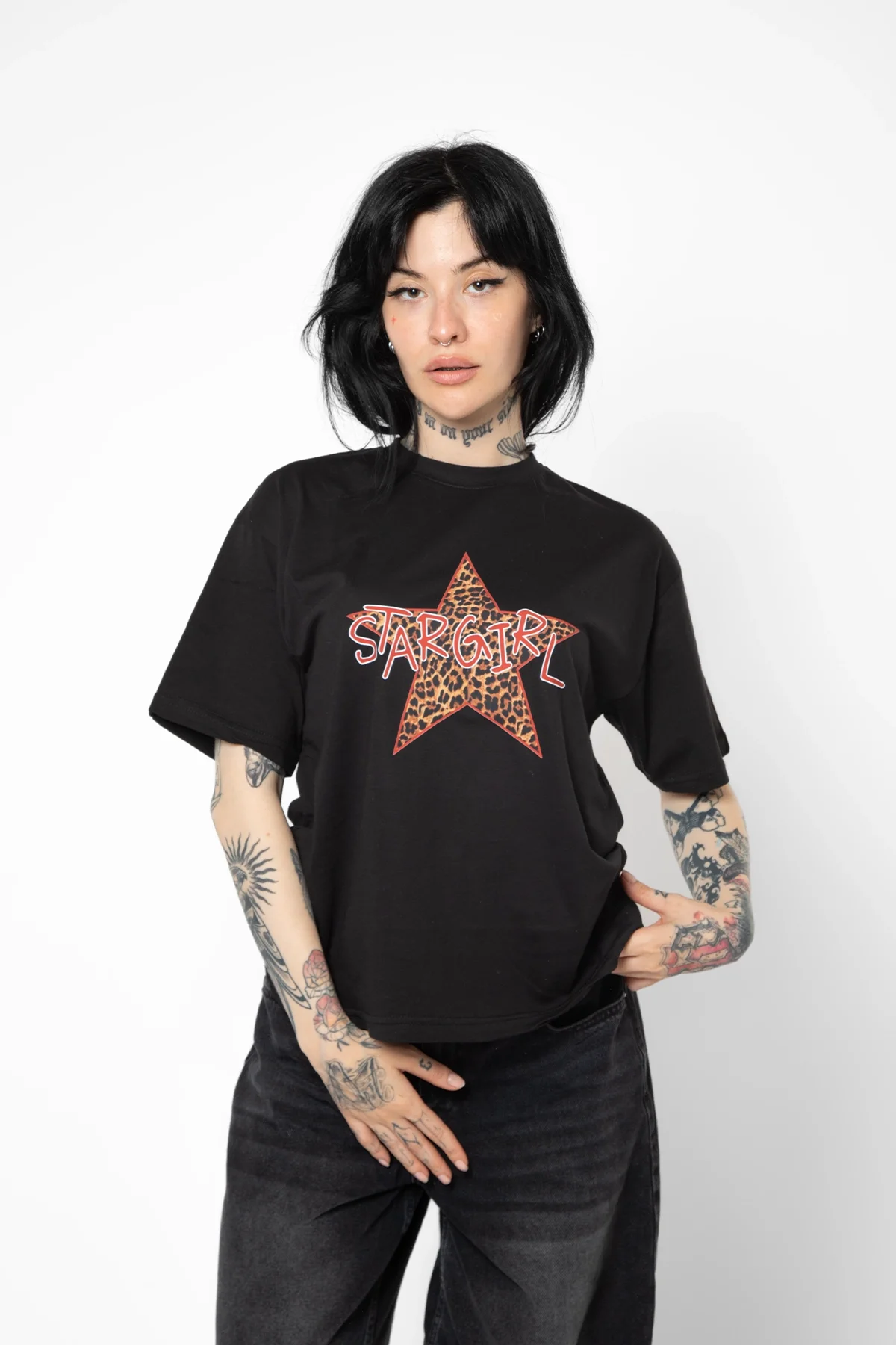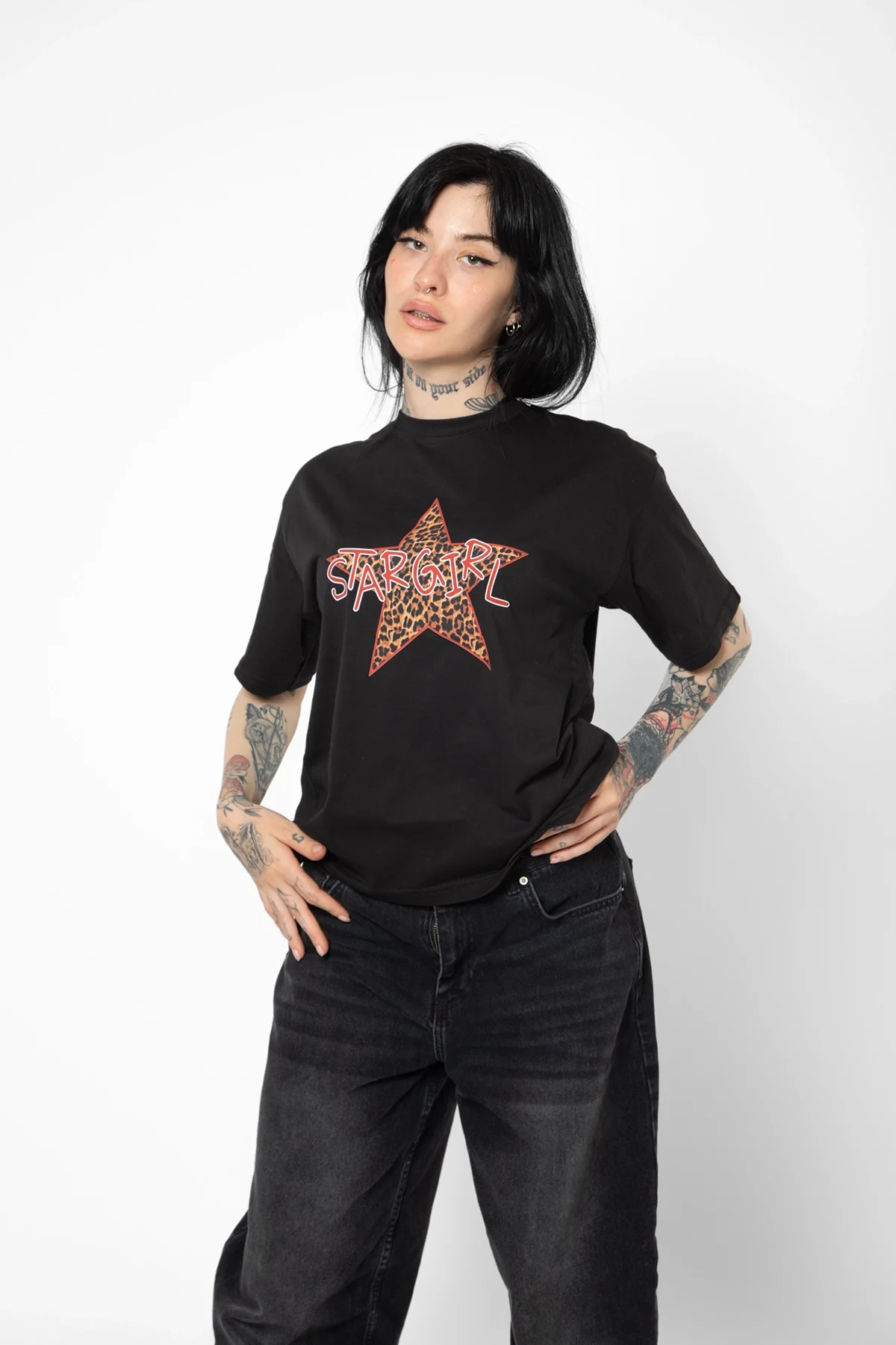 Star Girl Baskılı Relaxed Fit Siyah Kadın Tshirt ile tarzınızı yansıtın ve her ortamda şıklığınızı konuşturun!