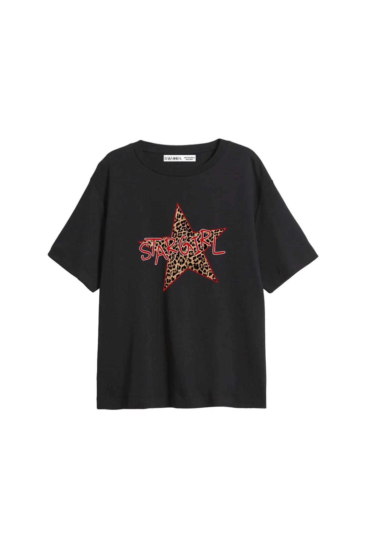 Star Girl Baskılı Relaxed Fit Siyah Kadın Tshirt, Bak Moda'nın kendine özgü tasarımı ile stilinizi tamamlayacak mükemmel bir seçenektir.