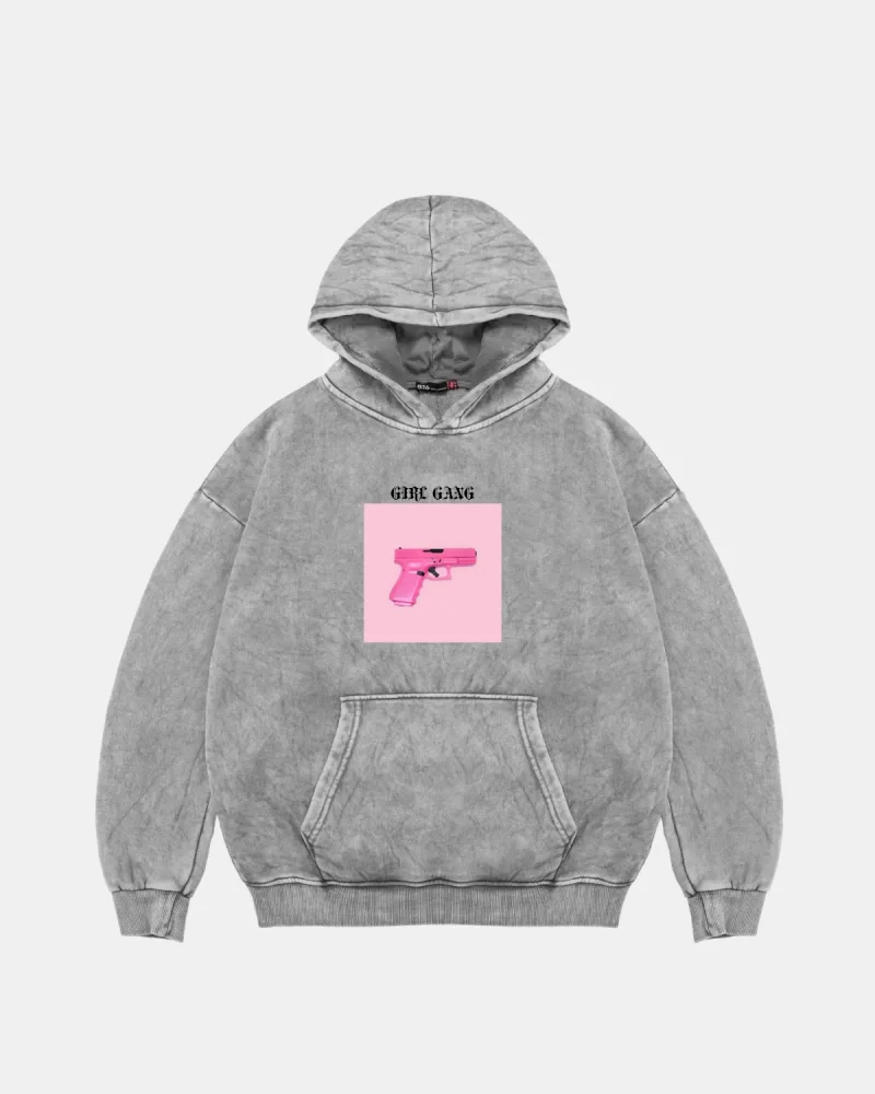 Girl Gang Baskılı Kadın Yıkamalı Siyah Hoodie