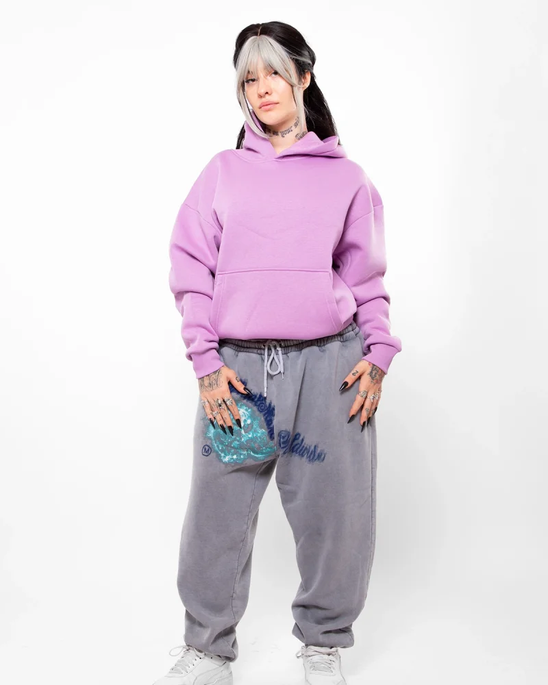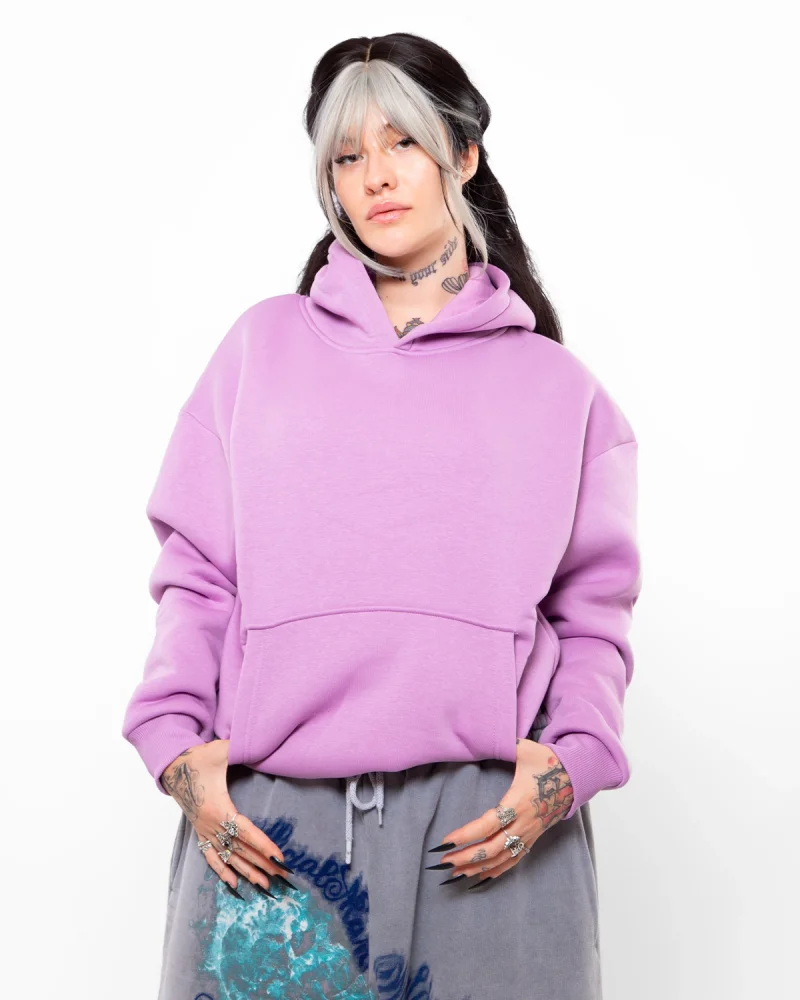 Basic Oversize Kadın Mor Hoodie