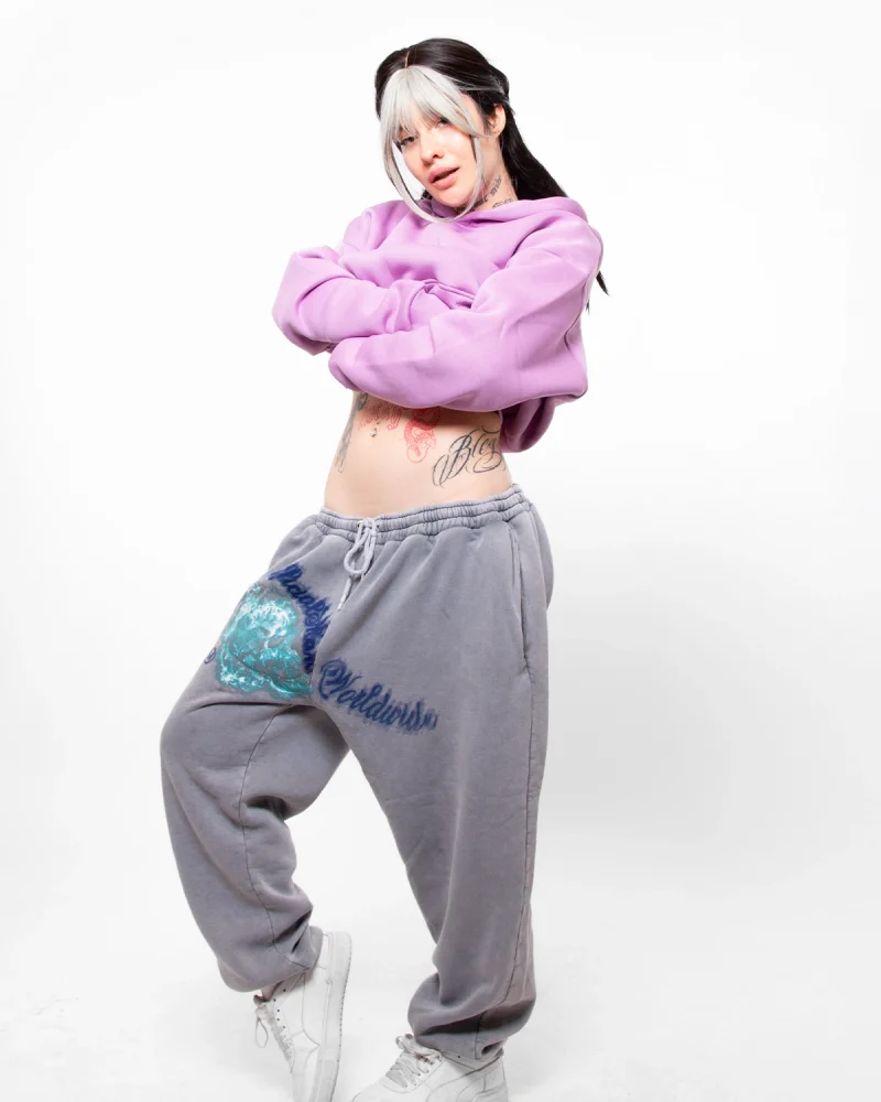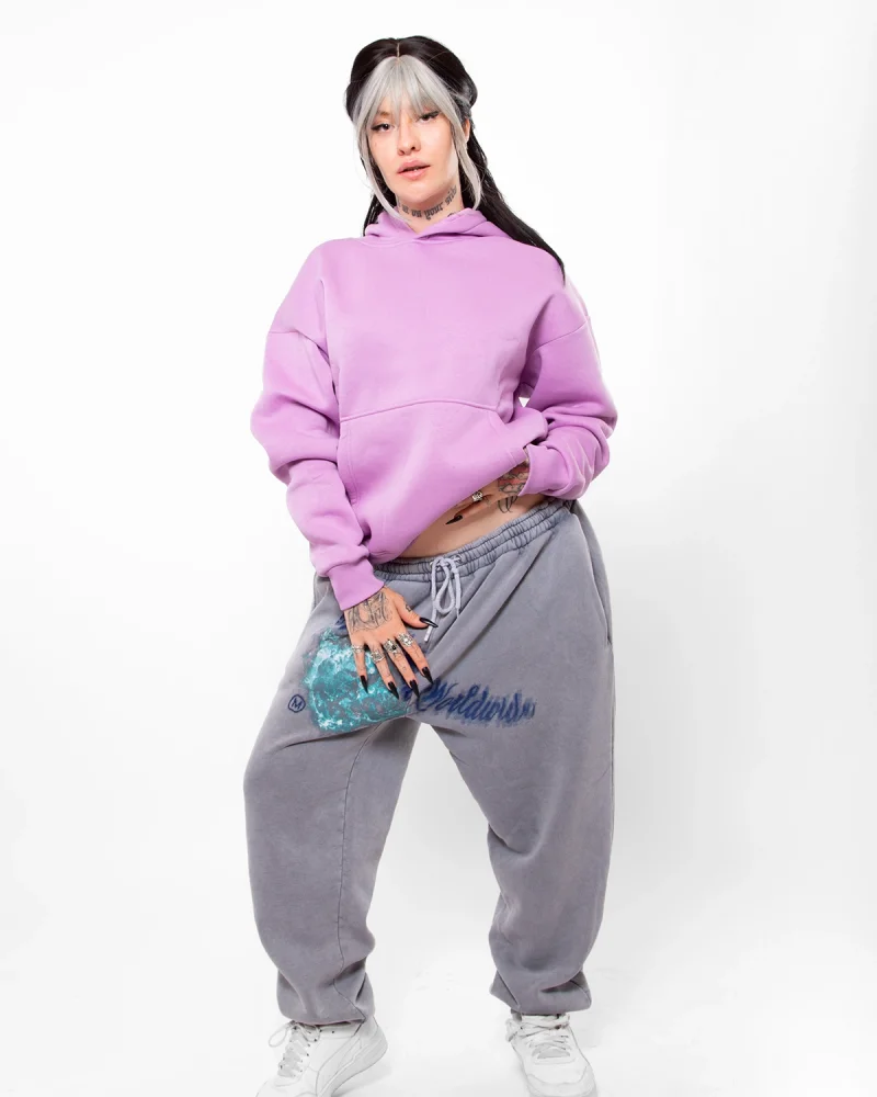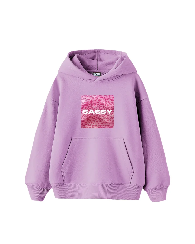 Sassy Baskılı Oversize Kadın Mor Hoodie
