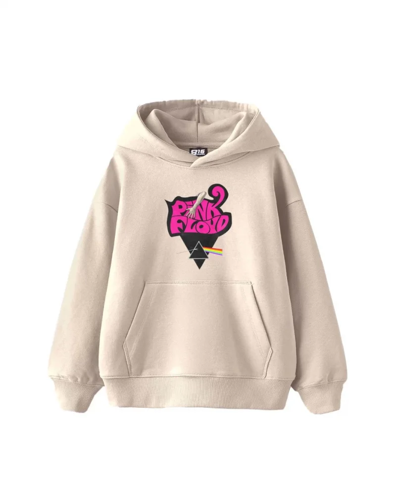 Pink Floyd Baskılı Oversize Kadın Bej Hoodie