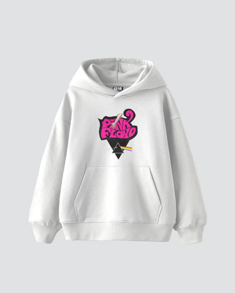 Pink Floyd Baskılı Oversize Kadın Beyaz Hoodie