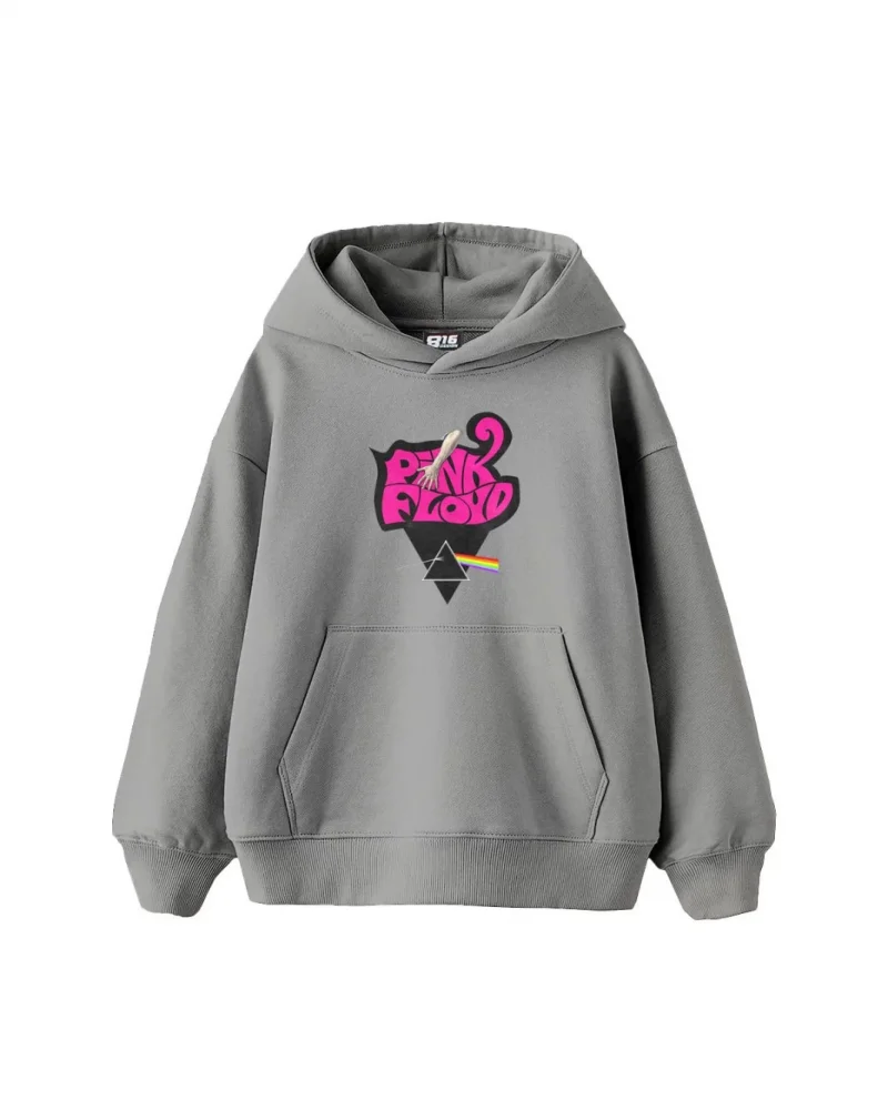 Pink Floyd Baskılı Oversize Kadın Gri Hoodie