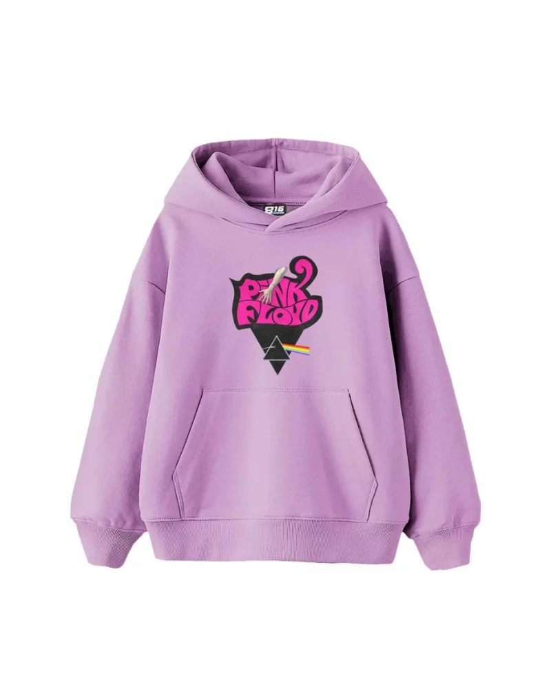 Pink Floyd Baskılı Oversize Kadın Mor Hoodie