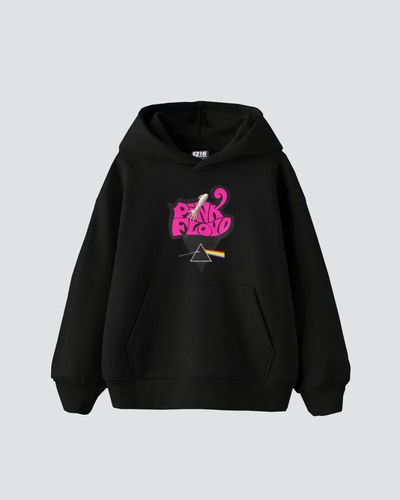Pink Floyd Baskılı Oversize Kadın Siyah Hoodie