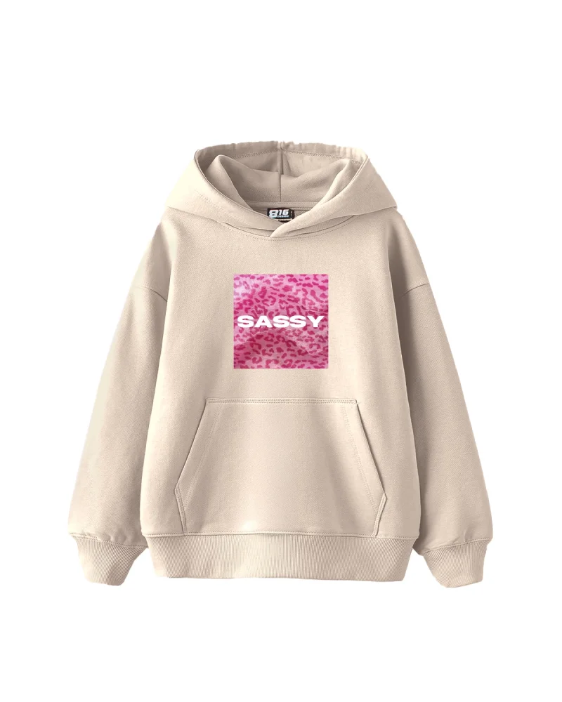 Sassy Baskılı Oversize Kadın Bej Hoodie