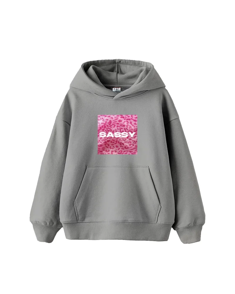 Sassy Baskılı Oversize Kadın Gri Hoodie