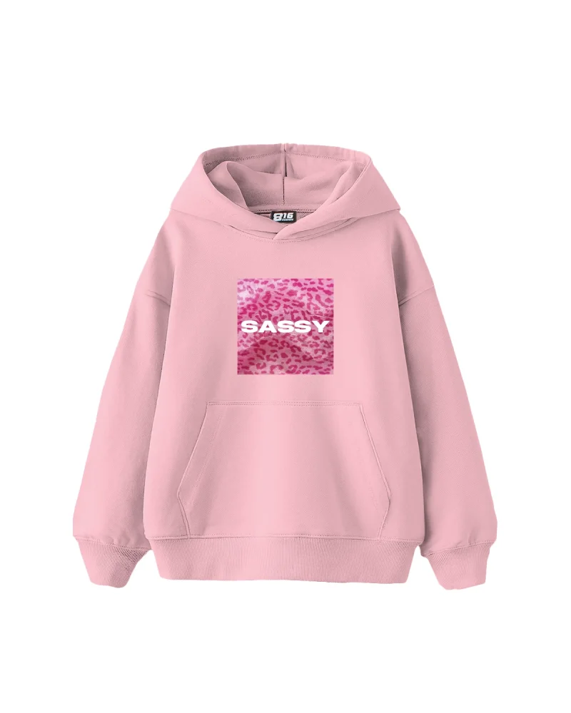 Sassy Baskılı Oversize Kadın Pembe Hoodie
