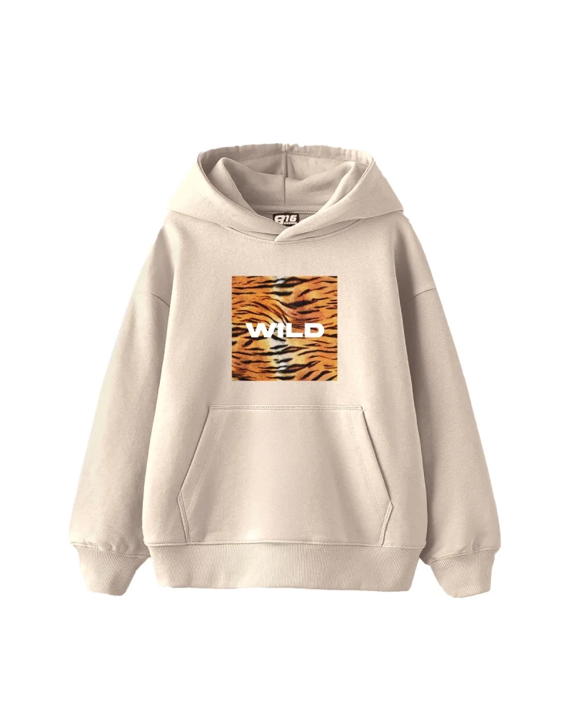 Wild Baskılı Oversize Kadın Bej Hoodie