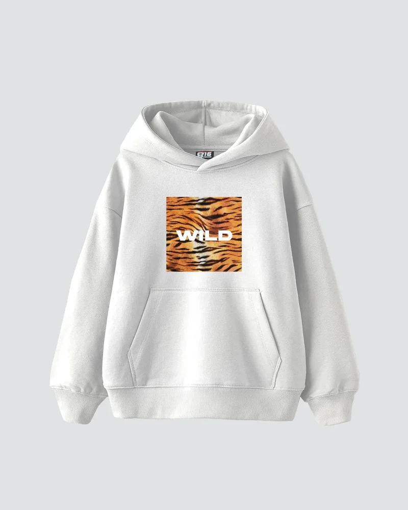 Wild Baskılı Oversize Kadın Beyaz Hoodie