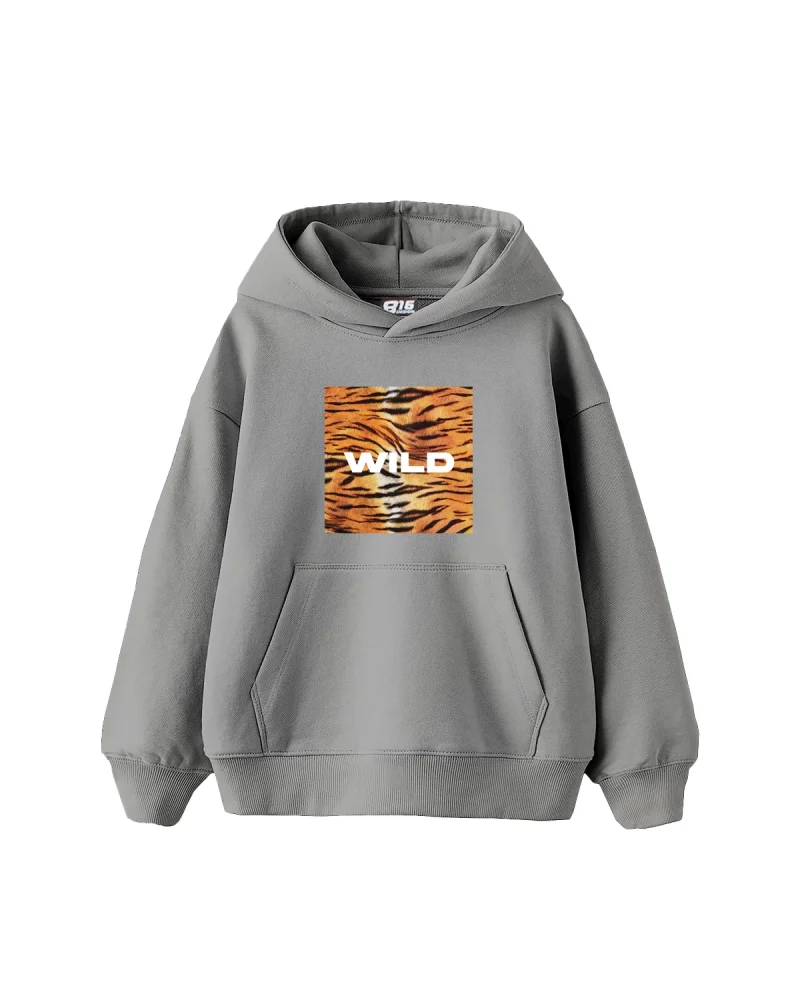 Wild Baskılı Oversize Kadın Gri Hoodie