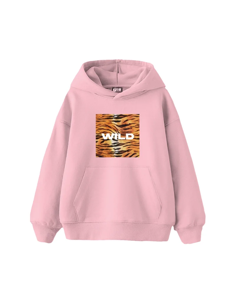 Wild Baskılı Oversize Kadın Pembe Hoodie