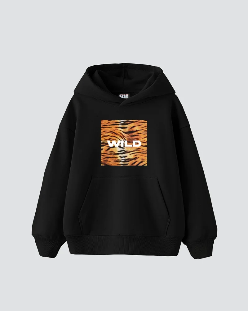Wild Baskılı Oversize Kadın Siyah Hoodie