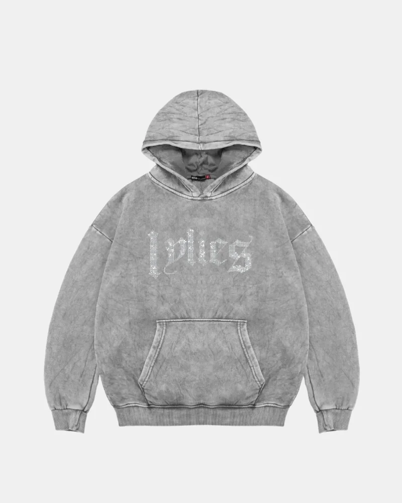 Lylies Taş Baskılı Oversize Unisex Yıkamalı Beyaz Hoodie