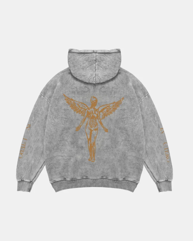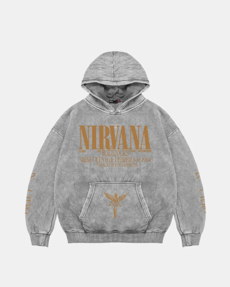 Yıkamalı Nirvana Sırt Baskılı Unisex Oversize Füme Hoodie