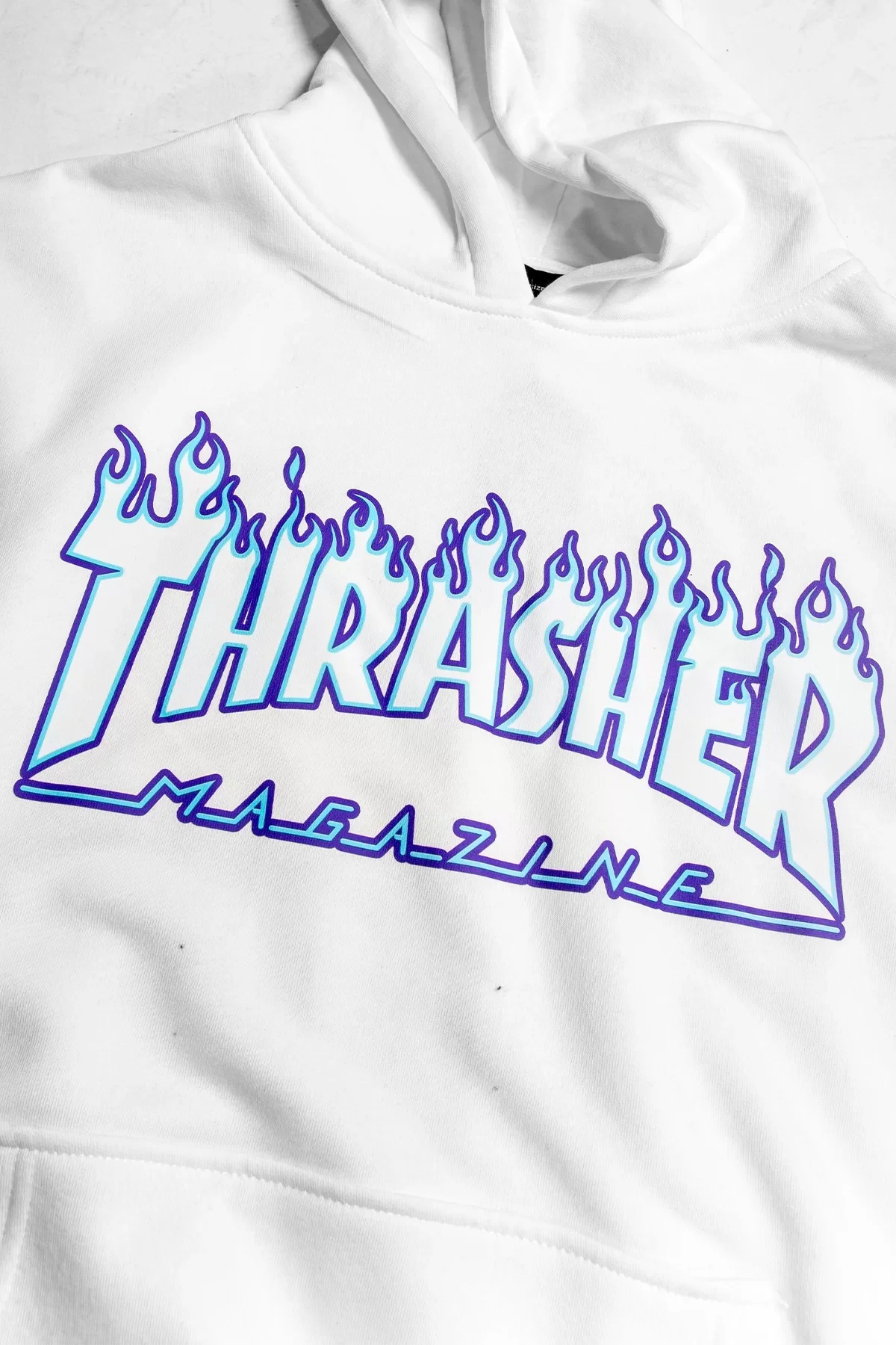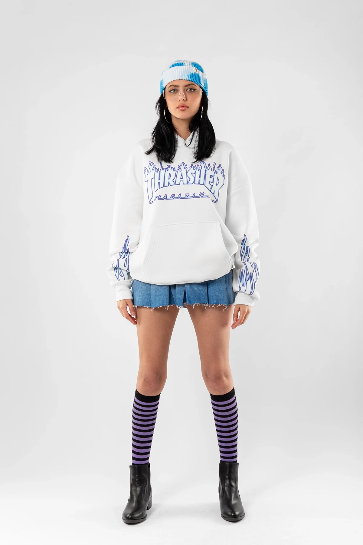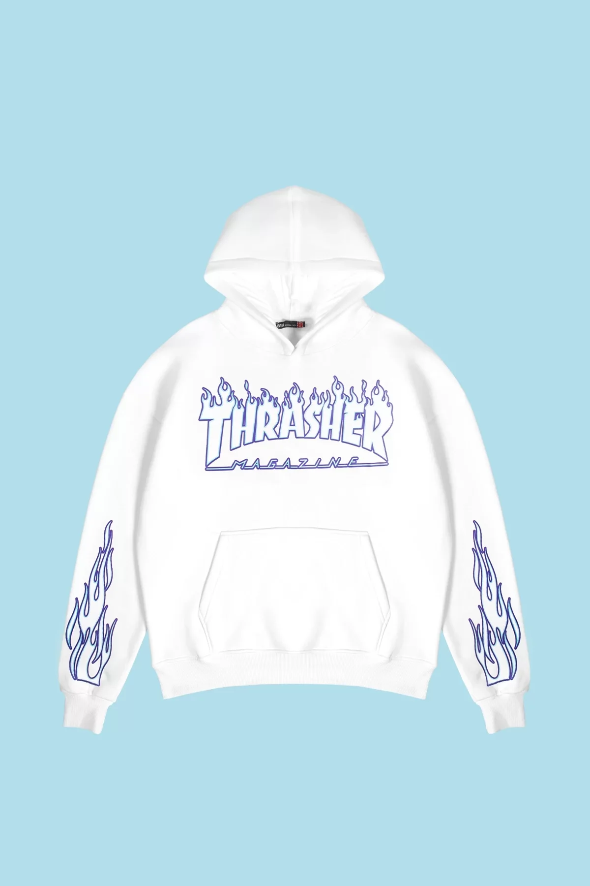 THRASHER FLAM BASKILI OVERSİZE UNİSEX BEYAZ HOODİE