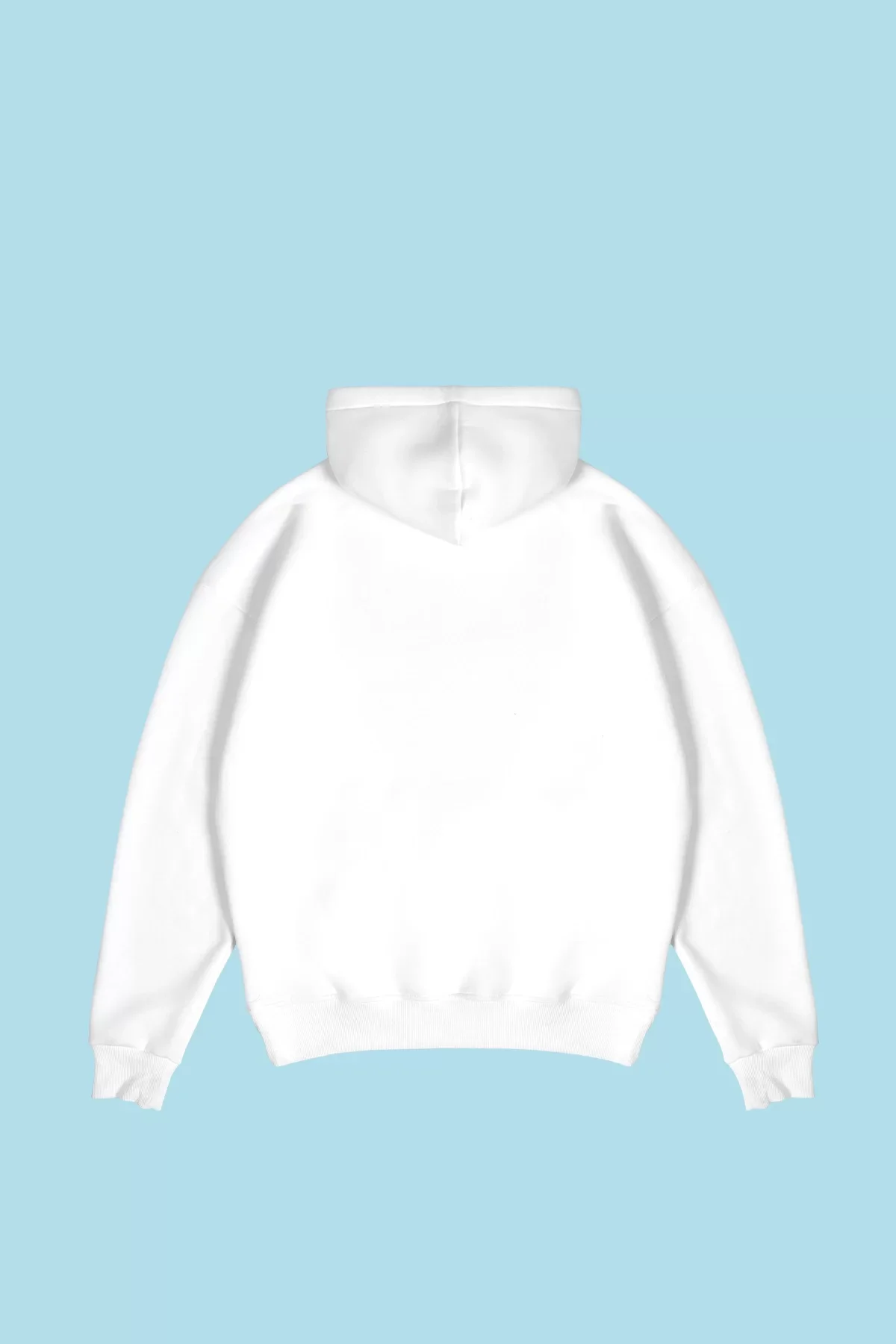 1990 Baskılı Oversize Unisex Beyaz Hoodie