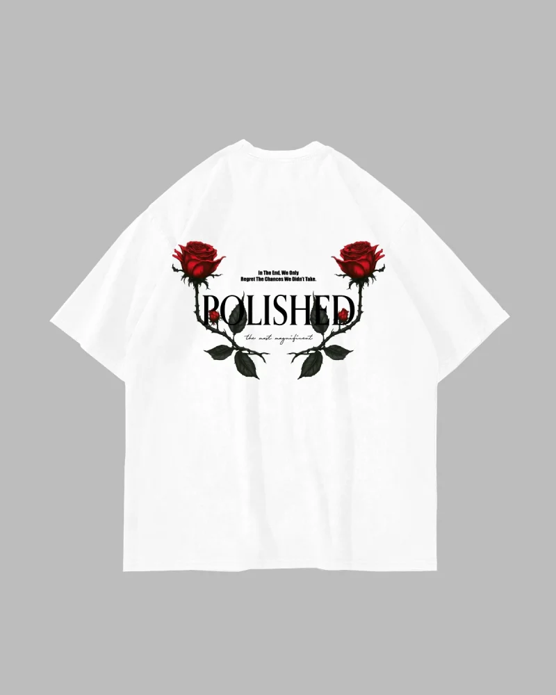 Polished Rose Baskılı Oversize Unisex Beyaz Tshirt