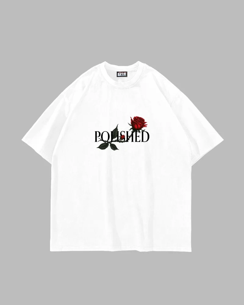 Polished Rose Baskılı Oversize Unisex Yıkamalı Beyaz Tshirt