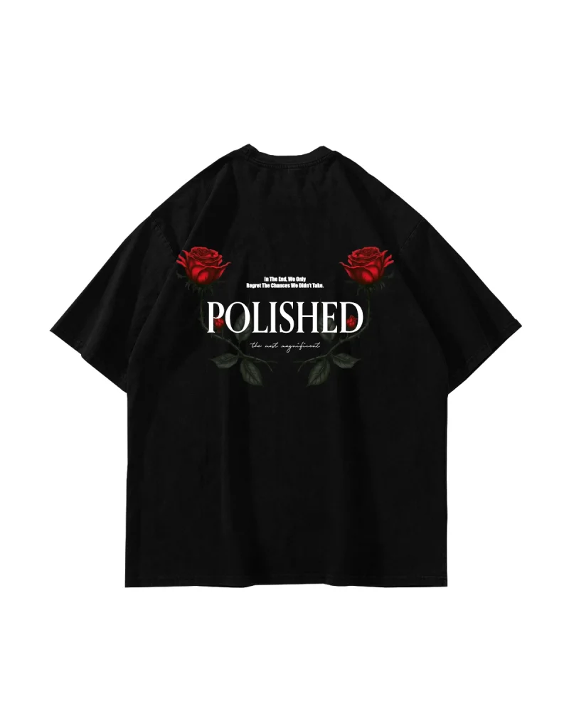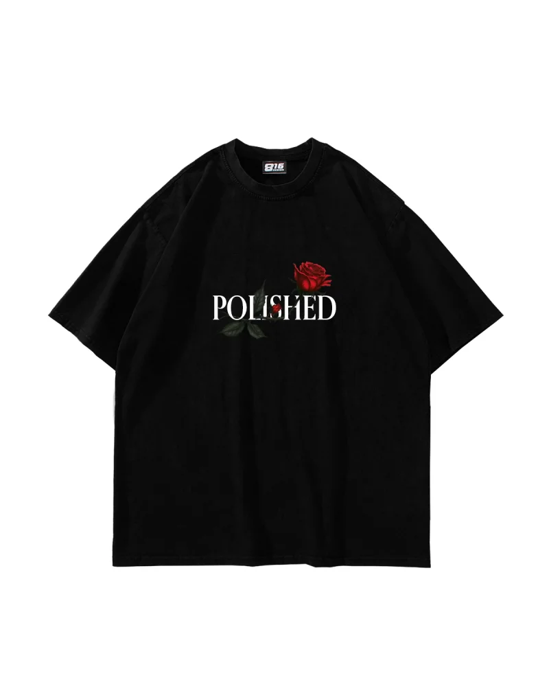 Polished Rose Baskılı Oversize Unisex Siyah Tshirt