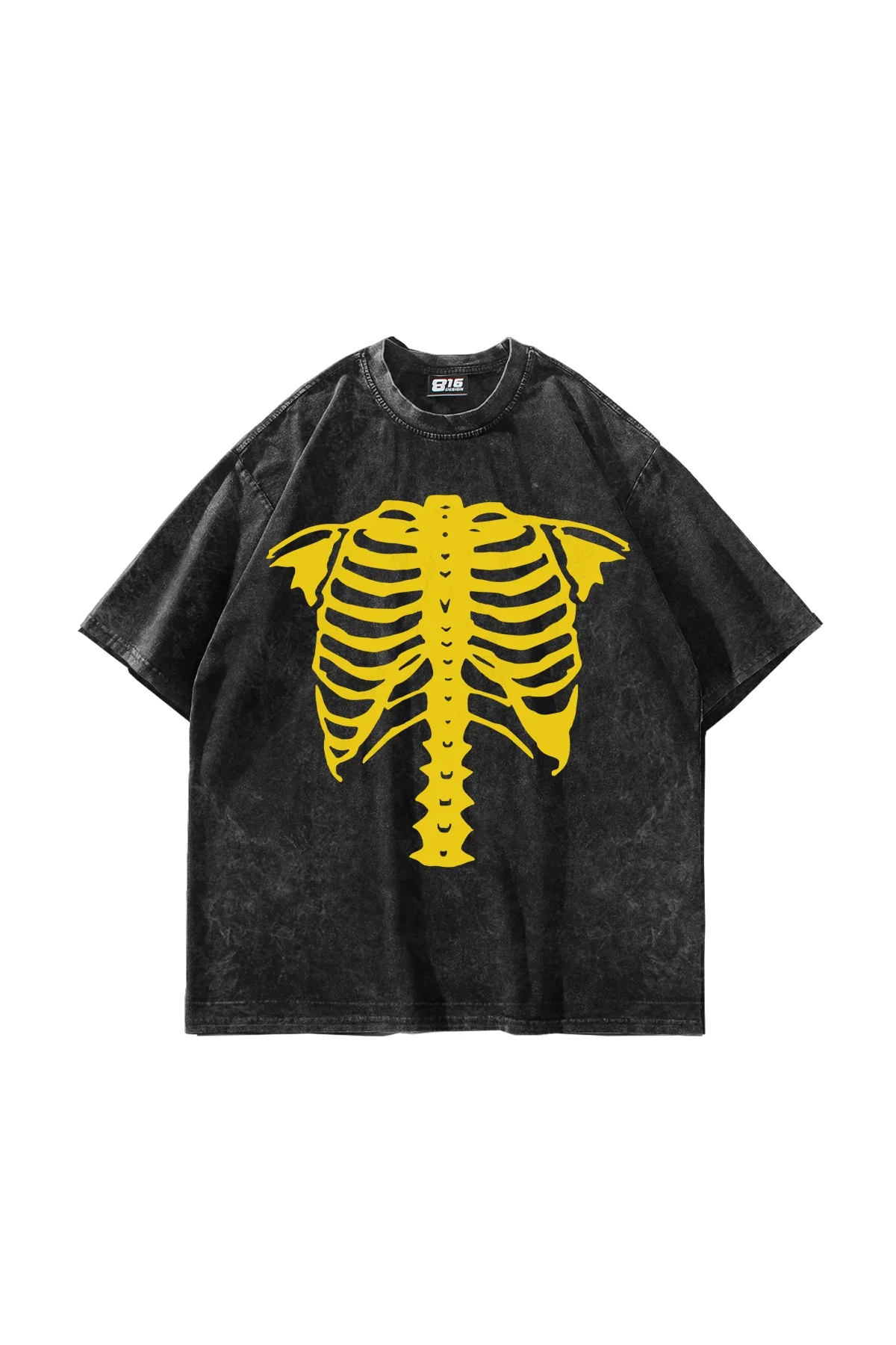 Yellow Ribcage baskılı oversize unisex yıkanmış siyah tshirt ile sokak modasına uyum sağlayın, Bak Moda kalitesiyle şıklığı keşfedin!