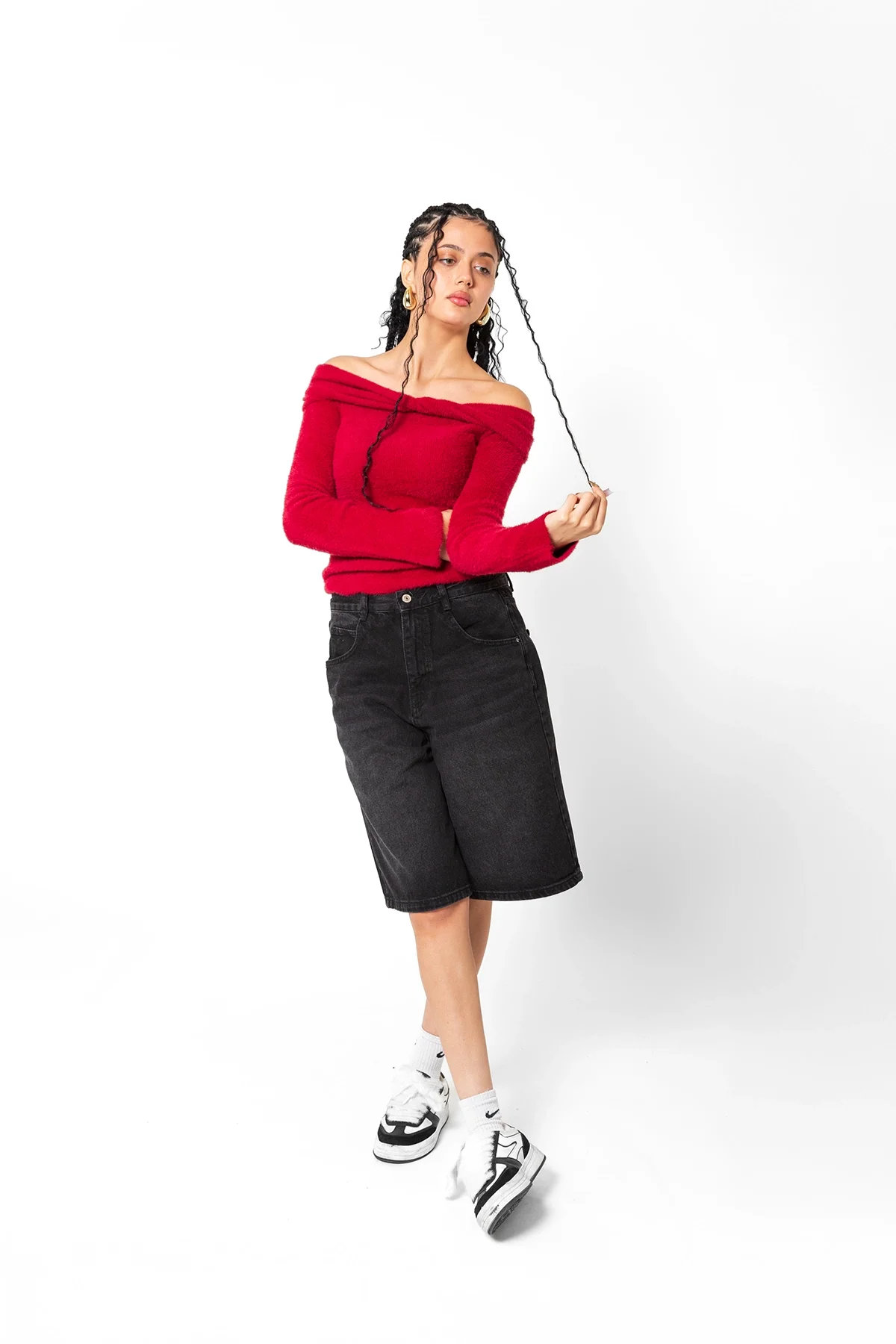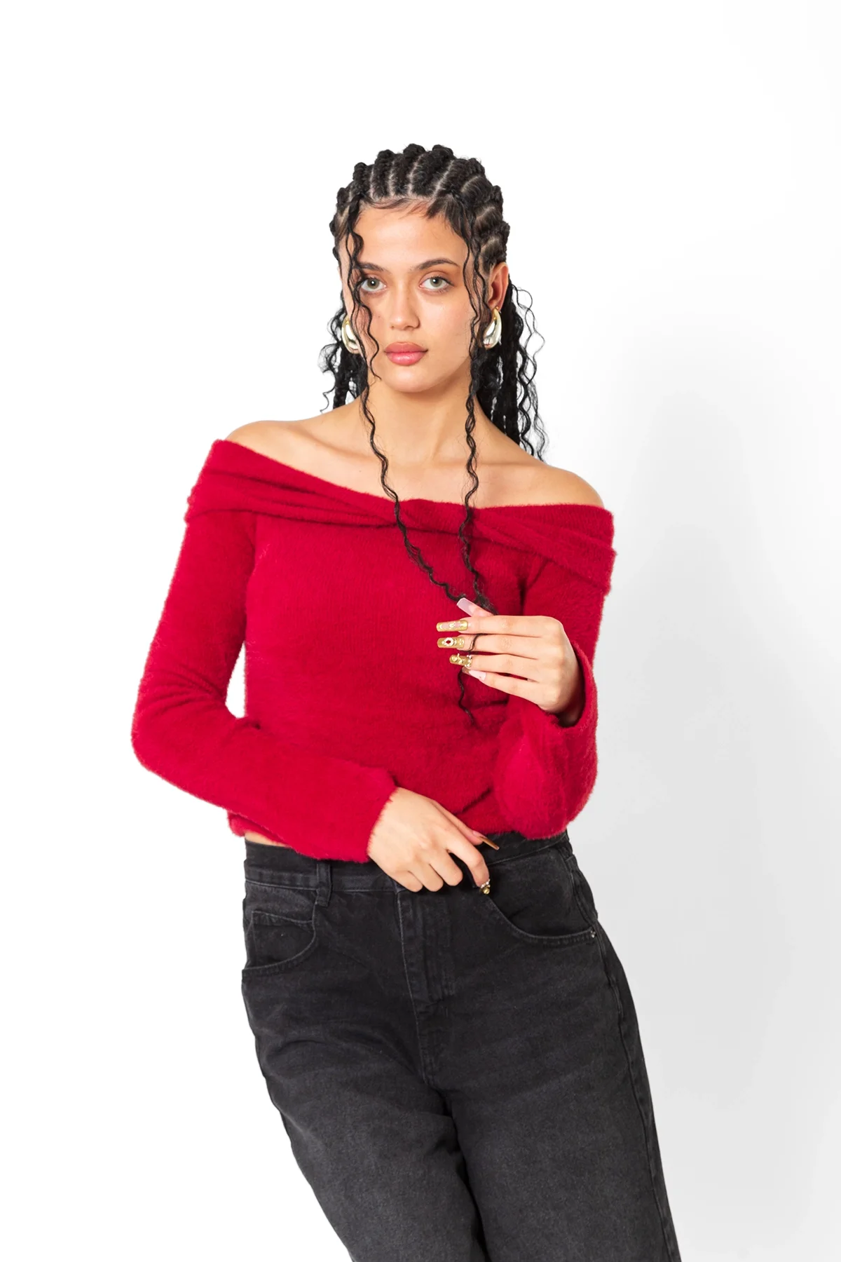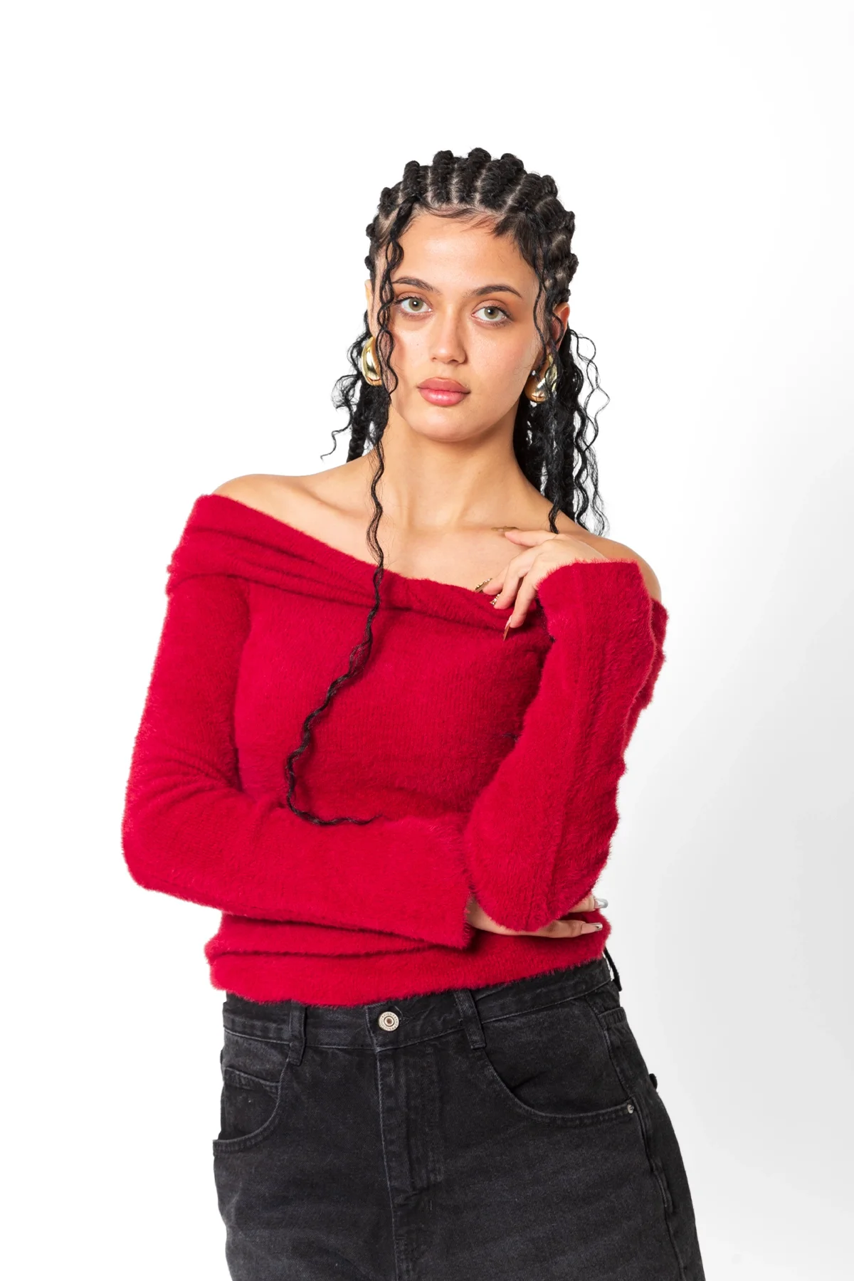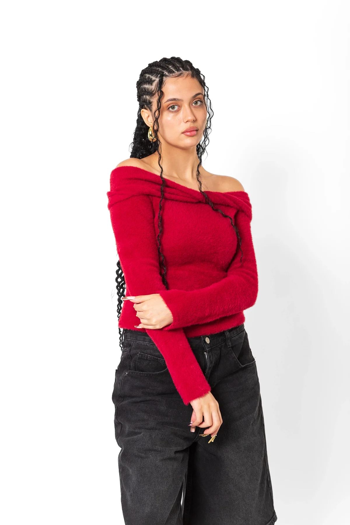 AÇIK OMUZLU BORDO PELUŞ BODY