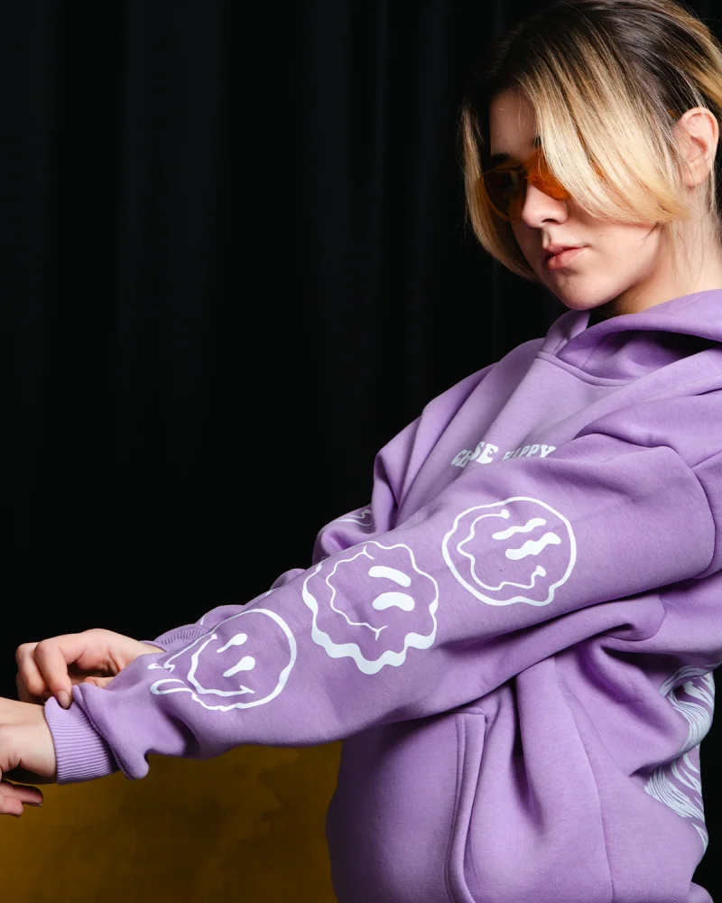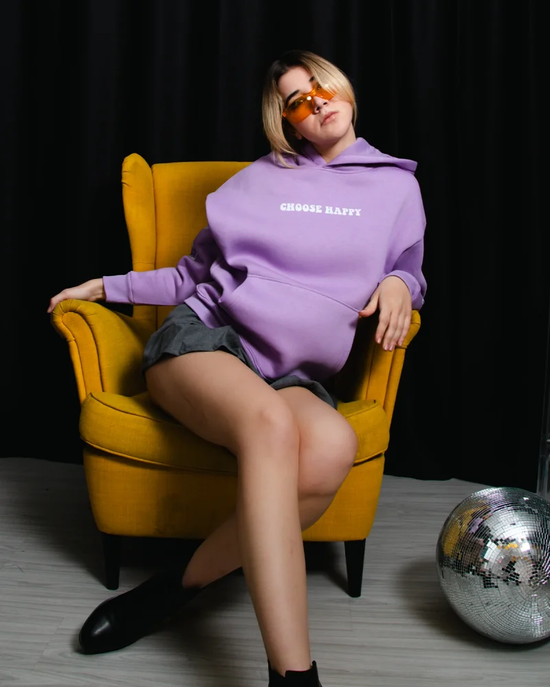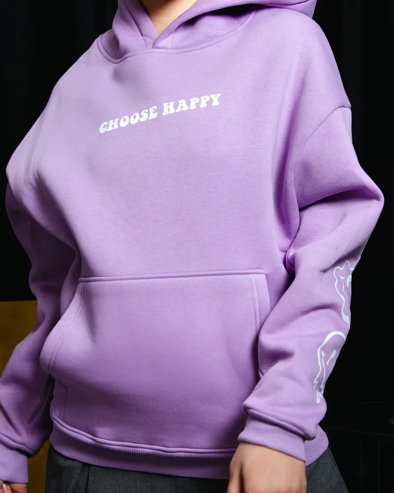 Choose Happy Baskılı Oversize Unisex Mor Hoodie