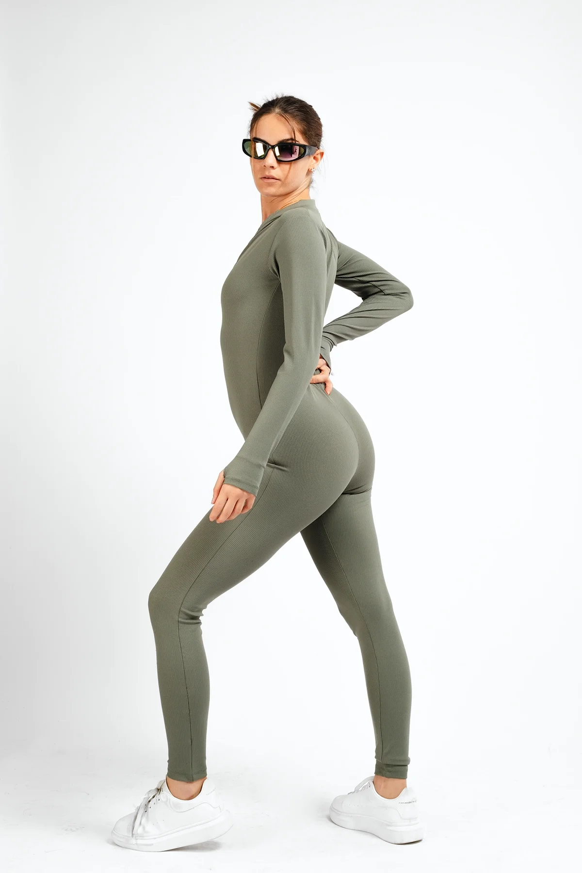 Fermuar Detaylı Kısa Kol Mini Gri Tulum