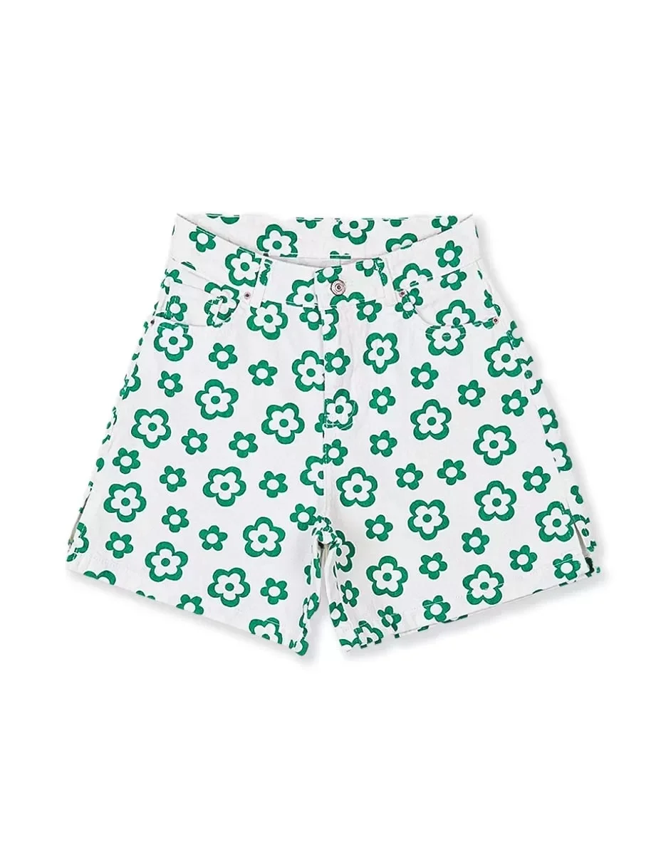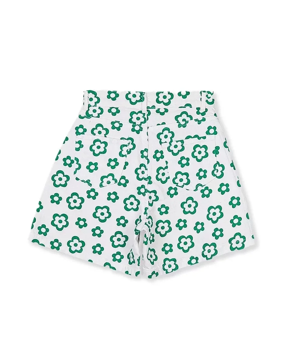 az mevsiminin enerjisini yansıtan bu çiçek desenli beyaz-yeşil şort, hafif ve nefes alabilen kumaşıyla gün boyu konfor sunar. Canlı yeşil tonlardaki çiçek desenleri, beyaz zemin üzerinde ferah ve şık bir görünüm oluşturur. Bel kısmındaki esnek lastik yapısı sayesinde vücuda uyum sağlar, hareket özgürlüğü sunar. Ön kısmında yer alan düz dikiş detayları ve pratik yan cepler ise tasarımı tamamlayarak hem estetik hem de fonksiyonel bir stil yaratır.
