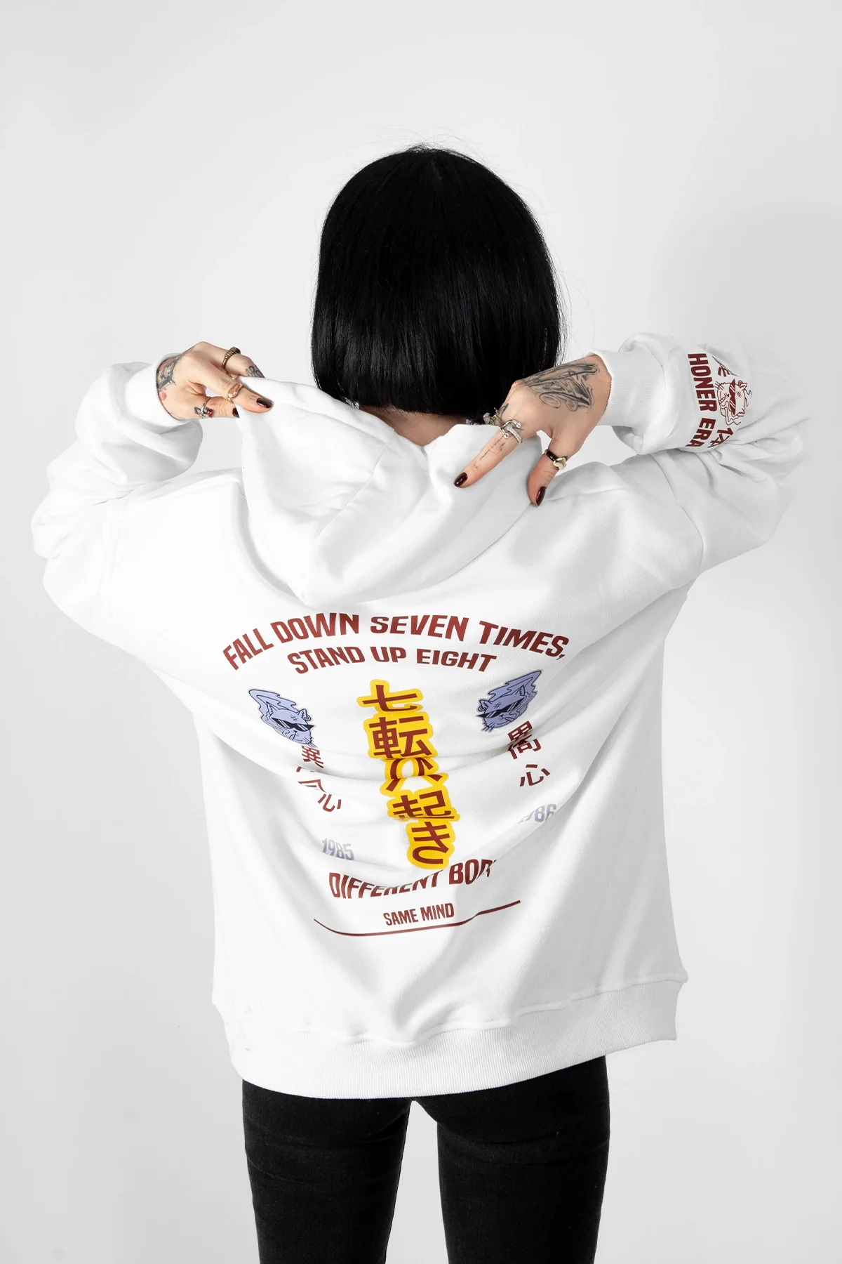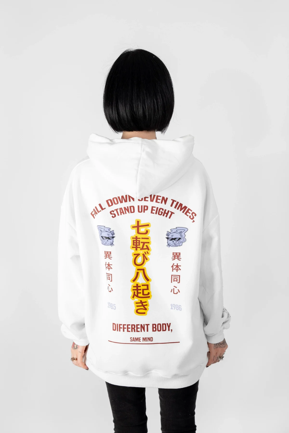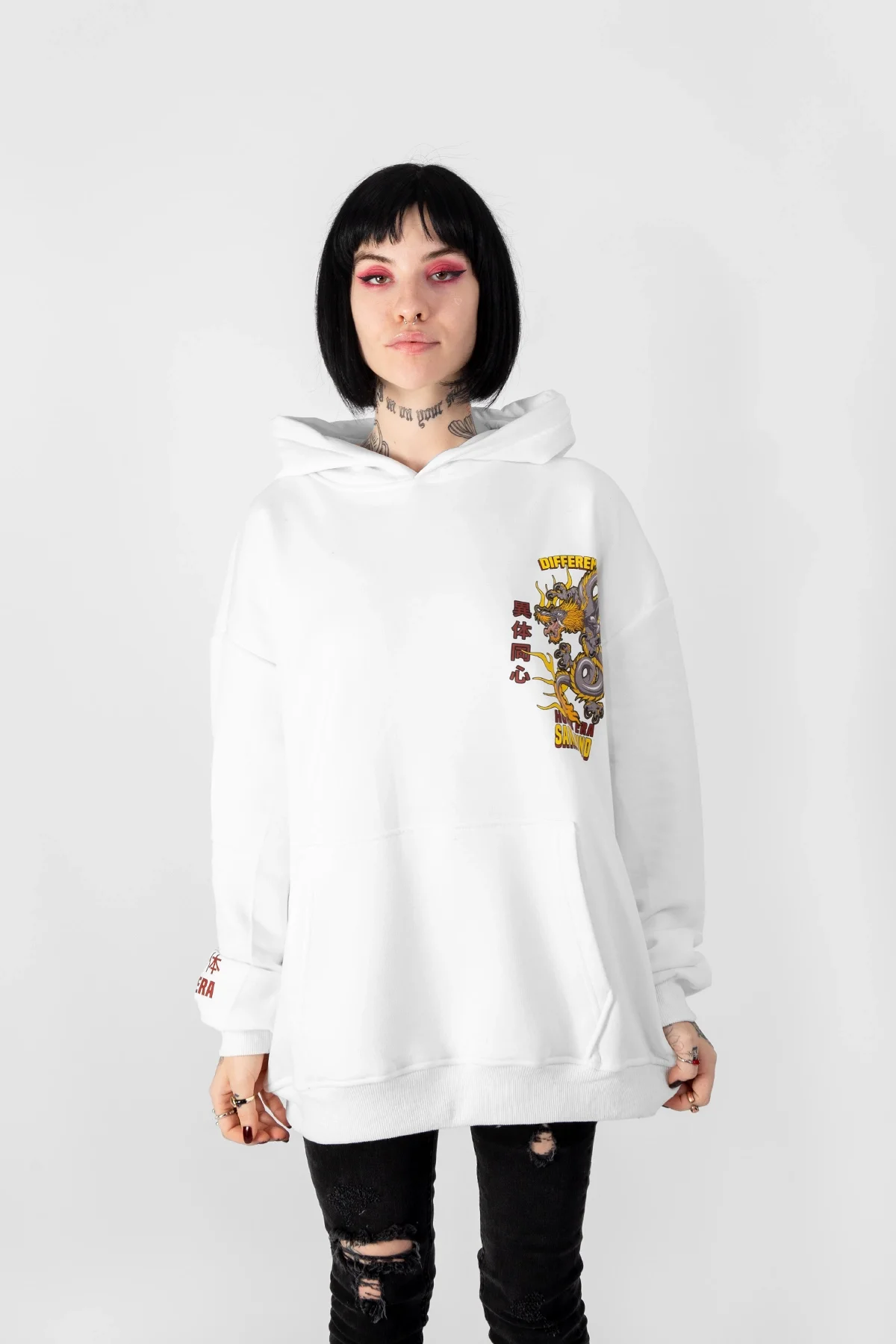 DİFFRENT BODY SIRT BASKILI OVERSİZE UNİSEX BEYAZ HOODİE