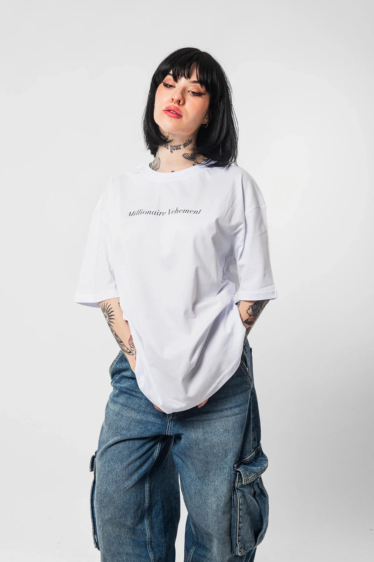 Bombshell Femme Baskılı Relaxed Fit Beyaz Tshirt
