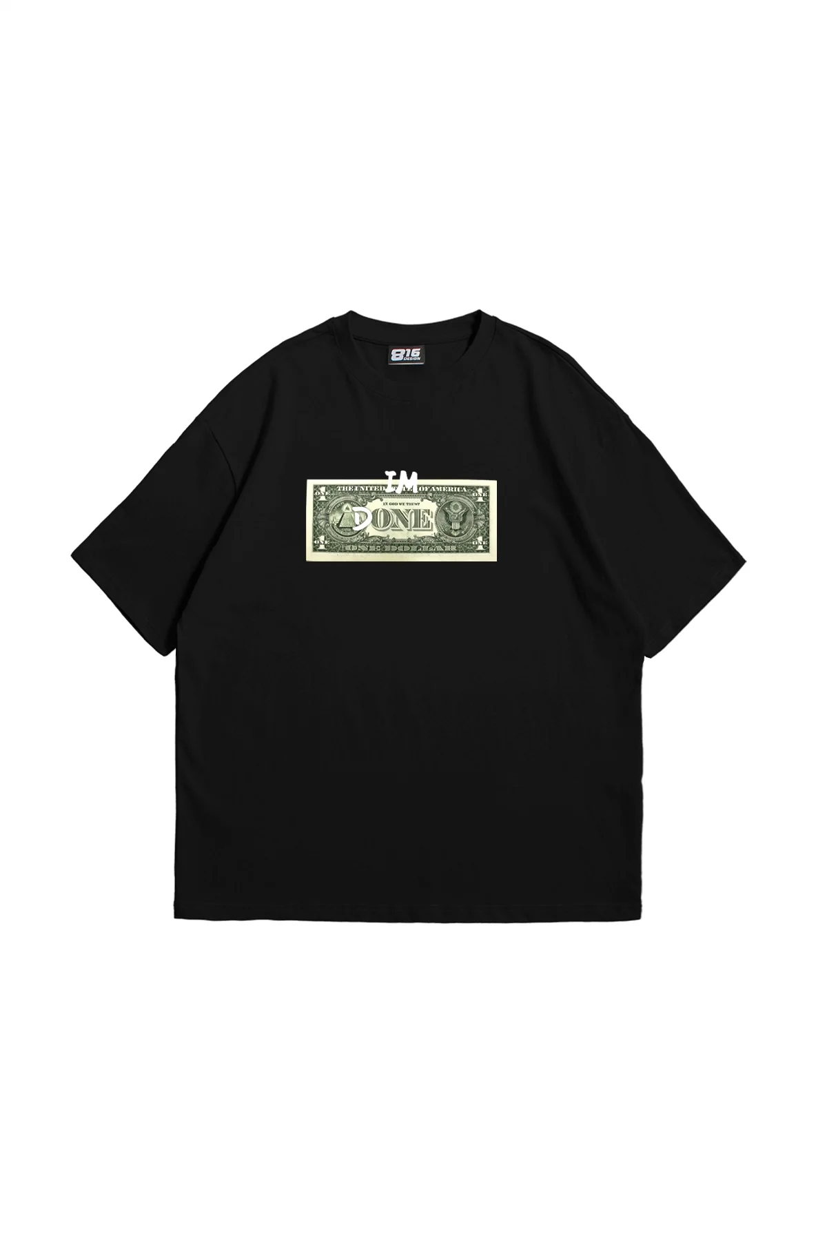 DOLLAR BASKILI OVERSİZE UNİSEX SİYAH TSHİRT