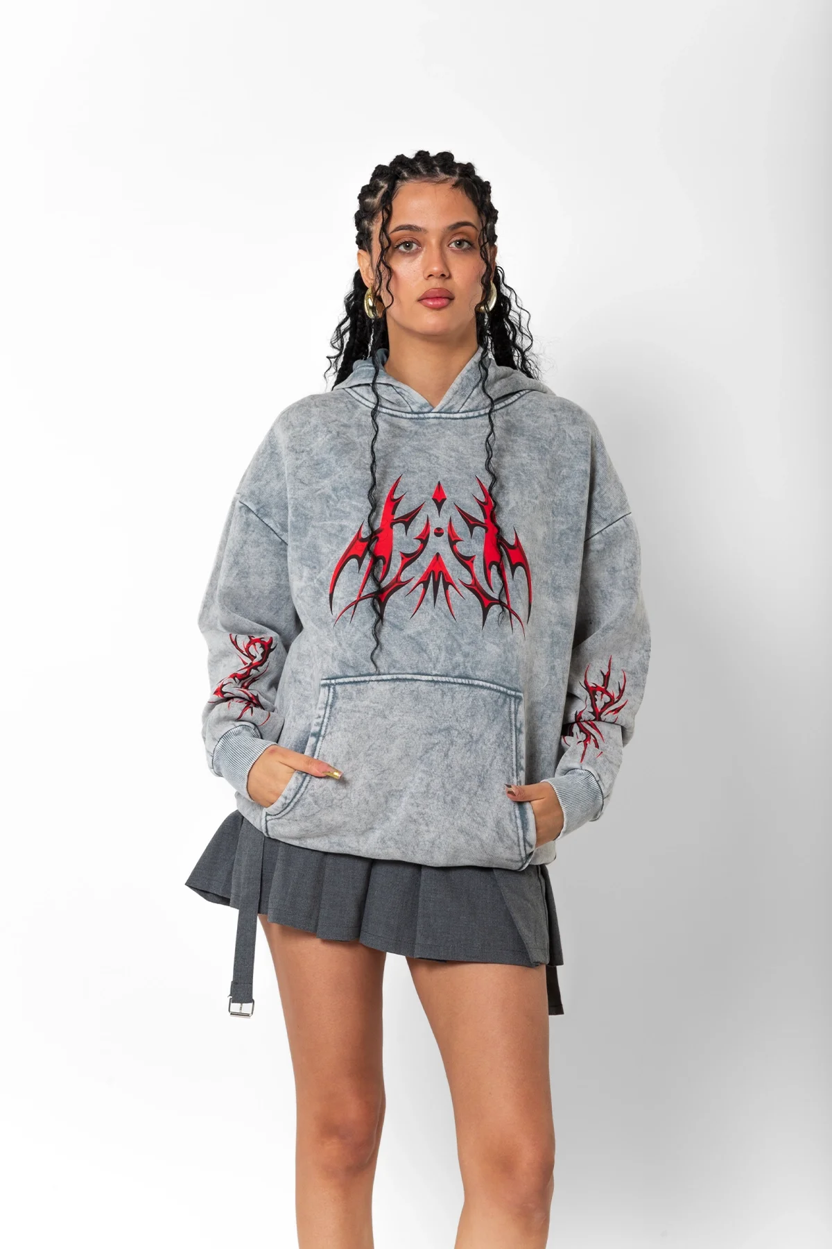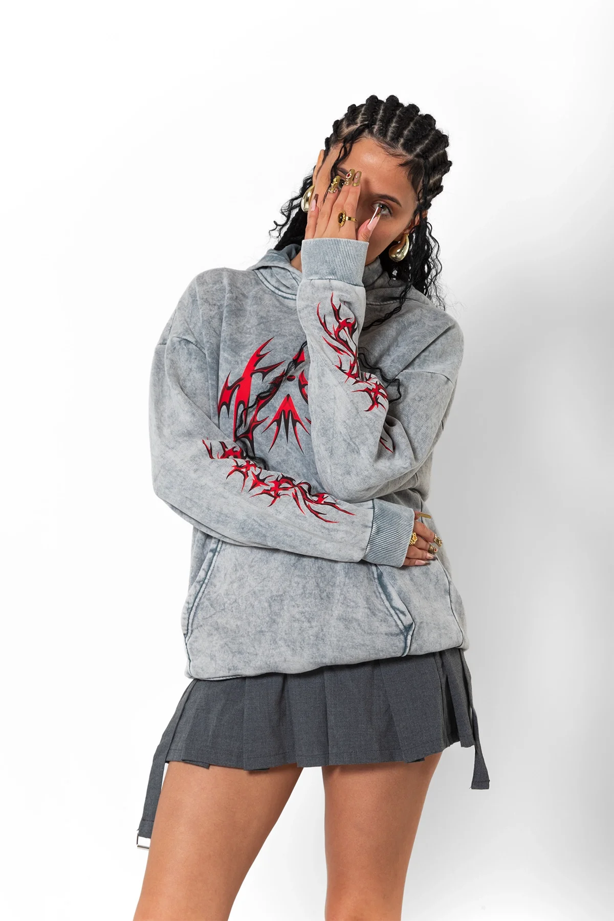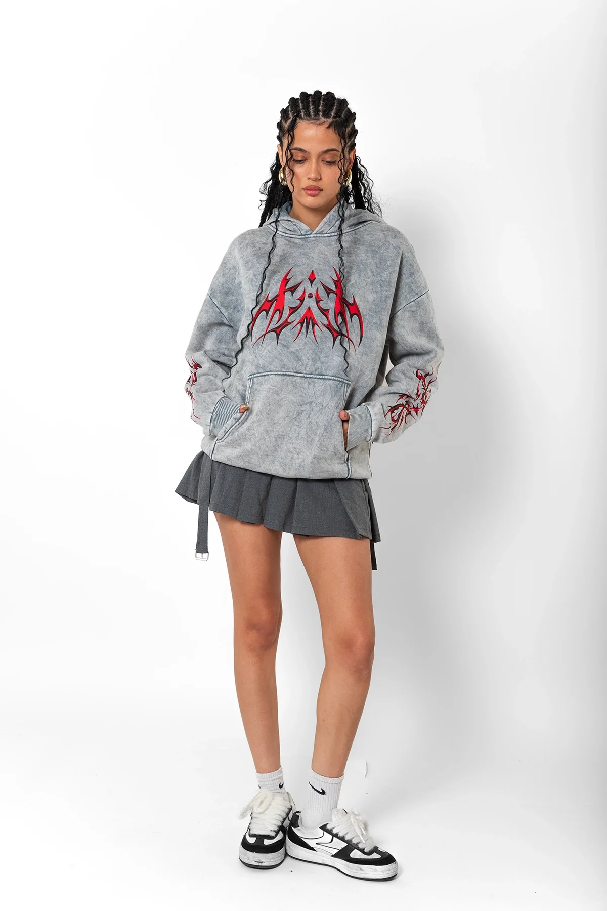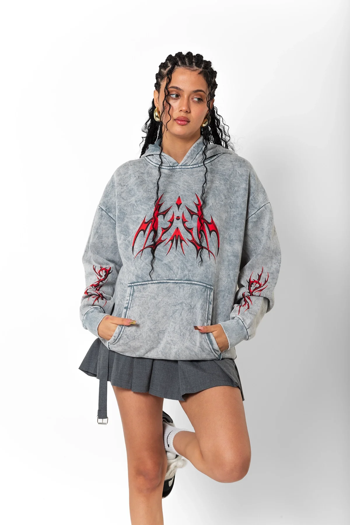 HOLOGRAPHİC RED BASKILI OVERSİZE UNİSEX PREMİUM YIKAMALI BEYAZ HOODİE